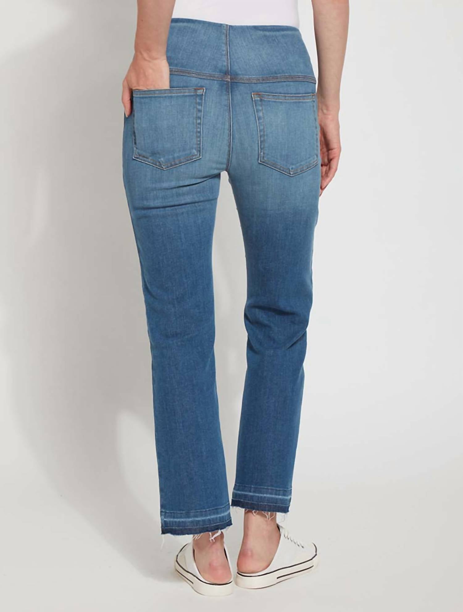 Se você está procurando um jeans boot-cut, este é o jeans para você. Apresentamos a Calça Jeans Baby Ankle da Lysse, uma peça essencial na cor Authentic Mid Wash que eleva seu guarda-roupa sem esforço. Esta calça jeans bootcut com comprimento até o tornozelo é confeccionada com o jeans "Holding Power" da Lysse, com uma mistura de 19% algodão reutilizado, 58% algodão, 21% poliéster reciclado e 2% elastano. Desenhada com um estilo pull-on, o exclusivo cós invisível com alisamento 360 patenteado garante um ajuste perfeito, enquanto a costura interna de 68 cm complementa a perna bootcut. Aproveite os benefícios de resistência a vincos e praticidade para viagens desta calça jeans, que mantém seu formato por toda a vida. As instruções de cuidado incluem lavagem à máquina e secagem no varal.
