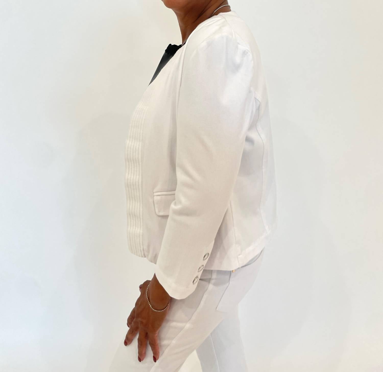 Aprimore seu estilo com a Jaqueta Jeans Bordada Lysse Arbor, uma peça branca versátil e elegante. Esta jaqueta possui gola careca e um prático fecho pull-on, com mangas três quartos, realçadas por detalhes bordados intrincados. Confeccionada em 95% algodão e 5% elastano, ela é confeccionada para garantir estilo e conforto. Instruções de cuidado: Lavar somente à mão.