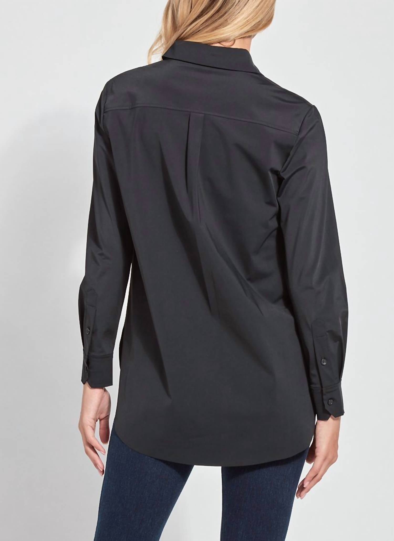 Mangas compridas confeccionadas em microfibra elástica durável em 4 direções, uma mistura de 75% náilon e 25% elastano, garantindo facilidade de movimentação e um ajuste perfeito ao tamanho. Fechamento: Fechamento por botão com bainha arredondada e corte cru para uma elegância sutil, e bolsos práticos adicionam praticidade. Lavar à mão separadamente com cores semelhantes e secar no varal para maior durabilidade. A modelo tem 1,78 m e veste tamanho P.