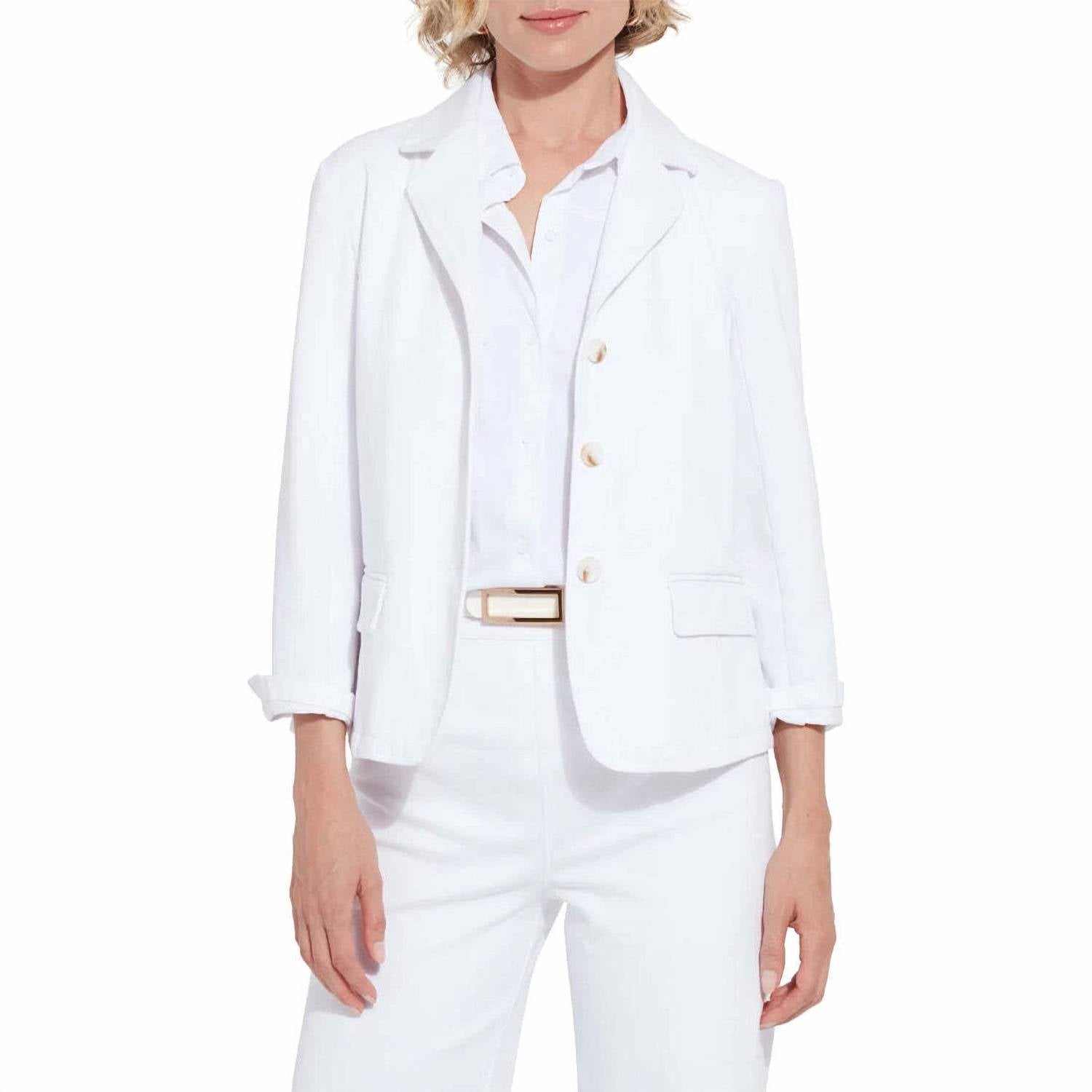 Um blazer tão versátil que você pode usá-lo no escritório ou combiná-lo com jeans para um visual mais casual. Apresentamos o Blazer Della Denim da Lysse, uma versão moderna de um design clássico com mangas longas e um corte cropped chique. Confeccionado em uma mistura elástica de 95% algodão e 5% elastano, este blazer branco liso é confortável e estiloso. Medindo de 57,5 cm a 60 cm de comprimento, ele inclui lapelas entalhadas, bolsos frontais com aba e fecho frontal por botões. Cuidar desta peça essencial é fácil, com instruções de lavagem à máquina e secagem no varal.