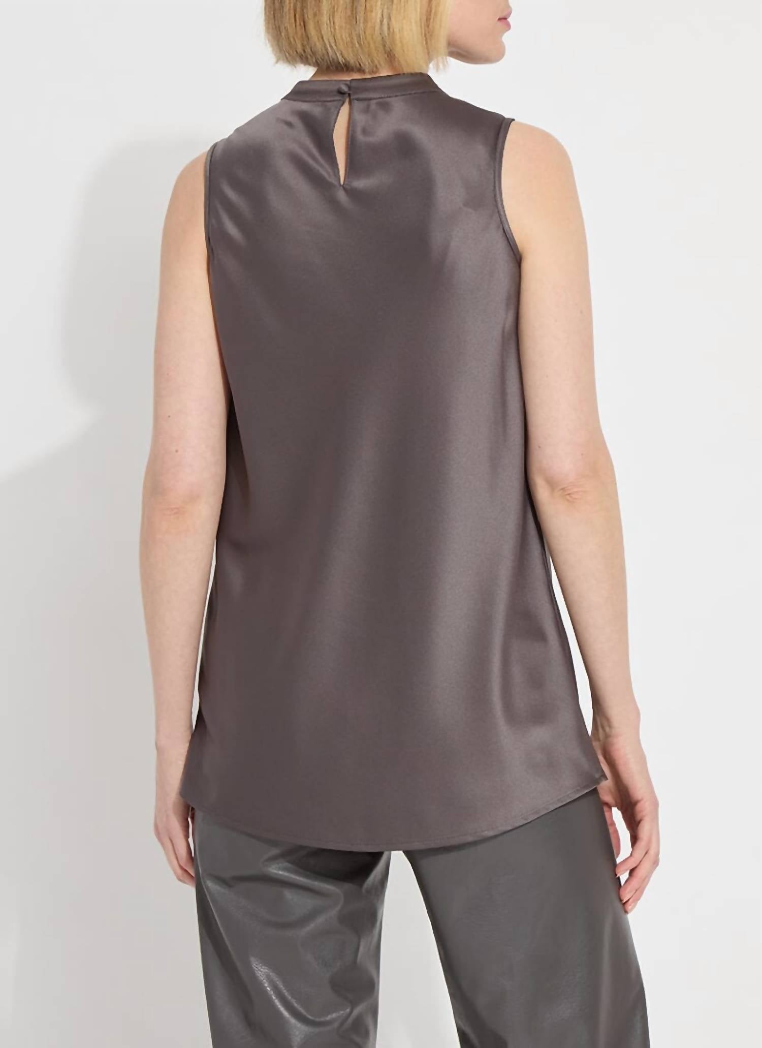 A regata perfeita para as estações mais quentes. A blusa sem mangas é confeccionada em cetim 100% poliéster, oferecendo um toque sedoso e um sofisticado design de gola falsa drapeada. Com um prático fecho pull-on e corte enviesado na frente e nas costas com abertura nas costas, combina perfeitamente com uma variedade de peças de vestuário. Para cuidados, basta lavar à mão e secar no varal para manter a silhueta elegante. A modelo tem 1,78 m e veste tamanho P.