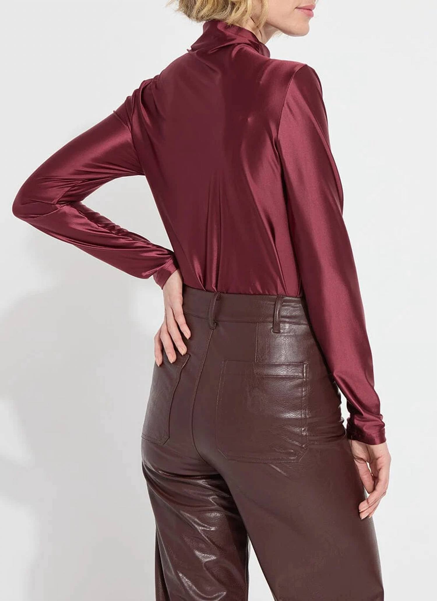 Uma blusa versátil que pode ser usada do escritório ao jantar! Apresentamos o Top Shalom Satin da Lysse, uma escolha sofisticada para qualquer guarda-roupa em um rico tom bordô. Com mangas longas e confeccionado em uma mistura de 77% nylon e 23% elastano, este top ostenta um luxuoso acabamento acetinado e oferece elasticidade em 4 direções para maior conforto. O comprimento até o quadril e o caimento frontal assimétrico adicionam elegância, enquanto o fecho pull-on garante facilidade de uso. Cuide desta peça sólida lavando-a na máquina e secando no varal, ideal para combinar com calças de pernas largas ou bootcut.
