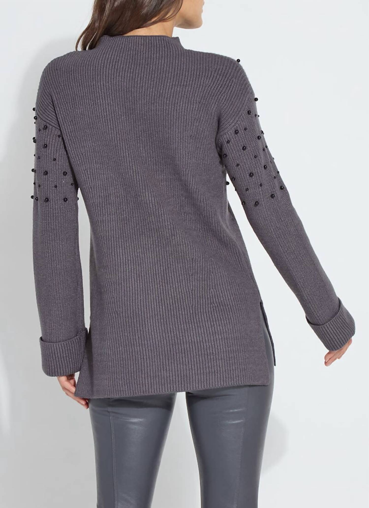 Use por baixo do seu suéter favorito ou por dentro de jeans para um visual de inverno perfeitamente elegante. O suéter Winona Pearl Pullover da Lysse é uma opção chique em cinza mesclado para quem busca um caimento oversized com conforto duradouro. Confeccionado em 78% acrílico e 22% poliéster, este suéter de manga comprida apresenta uma aconchegante textura canelada em jacquard e um elegante decote simulado. Com mangas boca de sino, punhos largos, bainha alta e baixa com fendas laterais e pérolas pretas costuradas à mão, este suéter se destaca sem comprometer o conforto. Possui fecho pull-on para facilitar o uso. Para cuidados, basta virar do avesso para lavar na máquina e secar na horizontal.