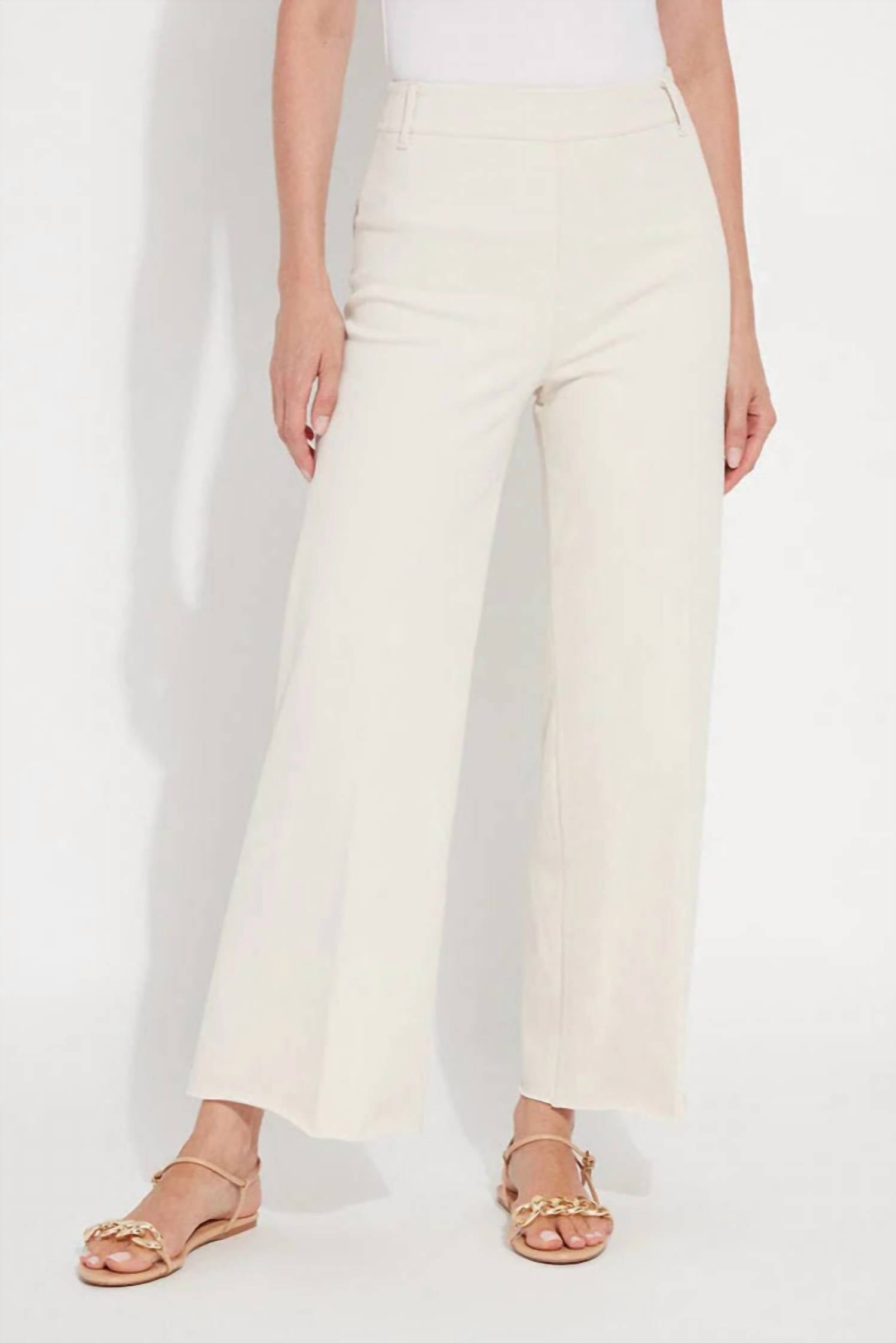 Uma silhueta elegante e surpreendentemente versátil. Experimente a combinação perfeita de conforto e estilo com a Calça Jeans Feminina Erin Hi Waist Wide Leg da Lysse, com uma cor Oat moderna e um caimento clássico. Esta calça jeans de cintura alta e pernas largas é confeccionada em Knit Denim com elasticidade em 4 direções, composta por 95% algodão e 5% elastano. Com cós invisível patenteado com alisamento 360 e fecho de zíper elegante, apresenta uma silhueta moderna sem costuras laterais. Desenhada com bainha sem acabamento, costura interna de 71 cm para um visual na altura do tornozelo e detalhes com bolsos traseiros e tachas metálicas. Cuide da sua calça jeans lavando-a na máquina com água fria e secando no varal. A modelo mede 1,78 m e veste tamanho P.