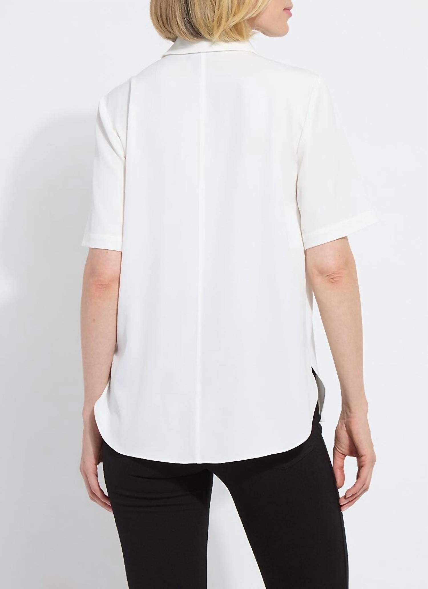 Combine isso com seus jeans e chinelos favoritos para sua próxima noite entre amigas. Apresentamos a Blusa Parker de Manga Curta da Lysse, uma peça minimalista para o seu guarda-roupa de verão na elegante cor Off-White. Esta blusa de estampa lisa apresenta mangas curtas e uma gola clássica com botões para um look versátil. Confeccionada com um caimento sob medida, é perfeita para ocasiões casuais e semiformais. Fechamento: Botão.