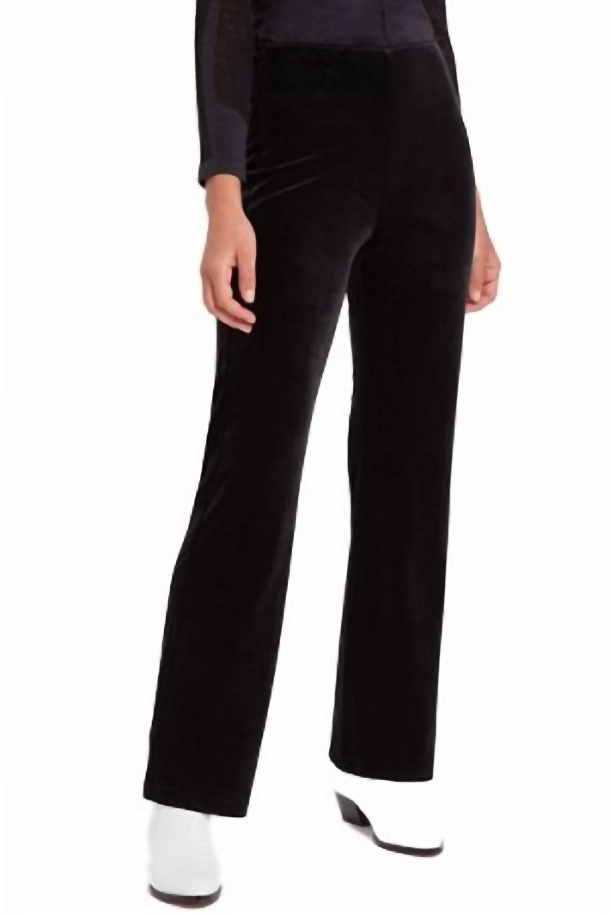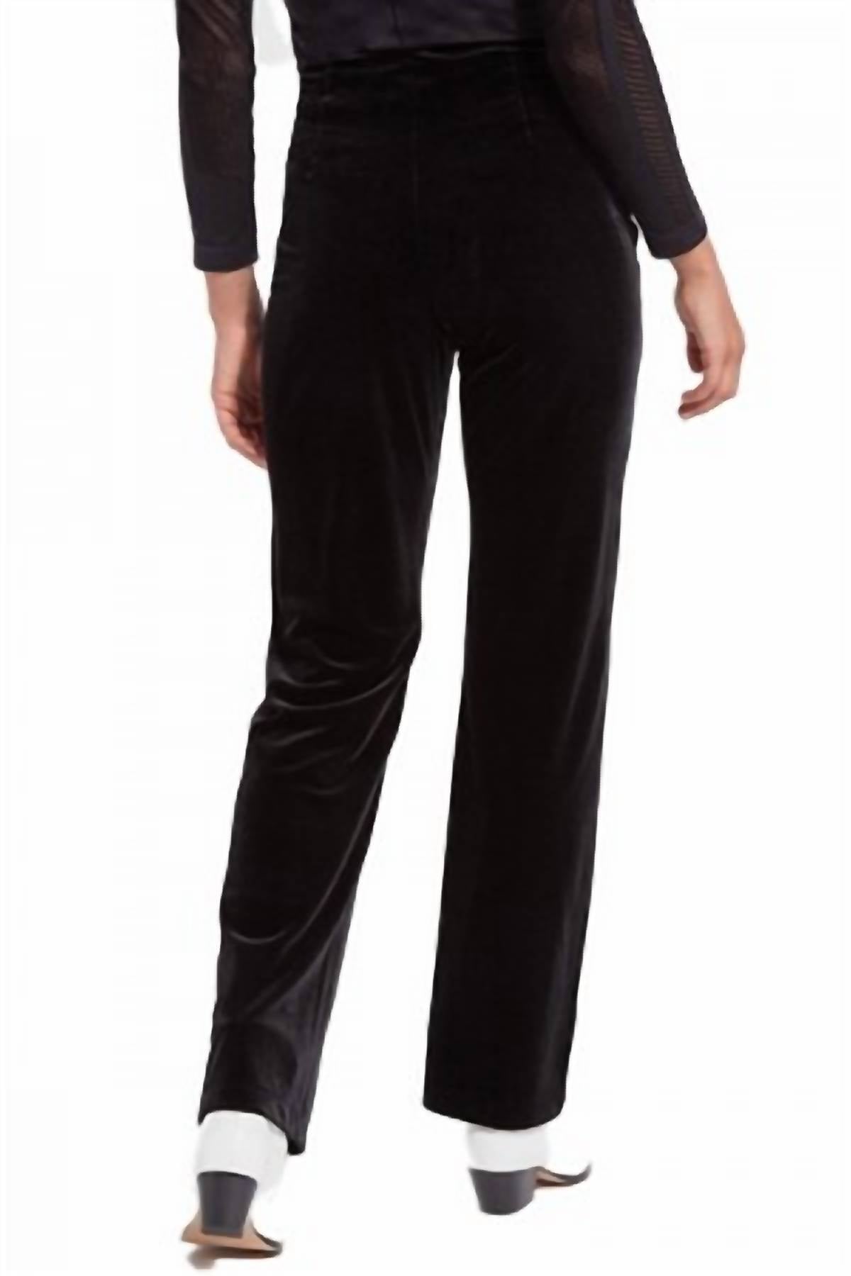 Apresentamos a Calça Feminina de Veludo da Lyssé, uma peça marcante para qualquer ocasião festiva em preto clássico. Confeccionada em veludo elástico luxuoso, composto por 92% poliéster e 8% elastano, esta calça proporciona elasticidade em 4 direções e uma silhueta de perna larga. Com um estilo pull-on e cós patenteado oculto, ela oferece o Lyssé Fit 360° Smoothing para um ajuste perfeito. Perfeita para um jantar de primavera, esta calça minimalista complementa uma variedade de looks.