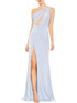 Eleve seu traje de noite com o vestido longo de cetim Mac Duggal em um azul deslumbrante. Esta peça elegante apresenta um design elegante e longo, perfeito para qualquer evento formal ou ocasião especial.