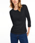 Camiseta feminina lisa com manga 3/4 Maison Jules, preta, tamanho pequeno