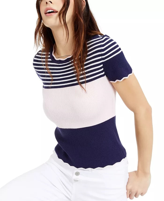 Ask a question about Blusa feminina estampada London da Maison Jules, azul marinho, tamanho pequeno