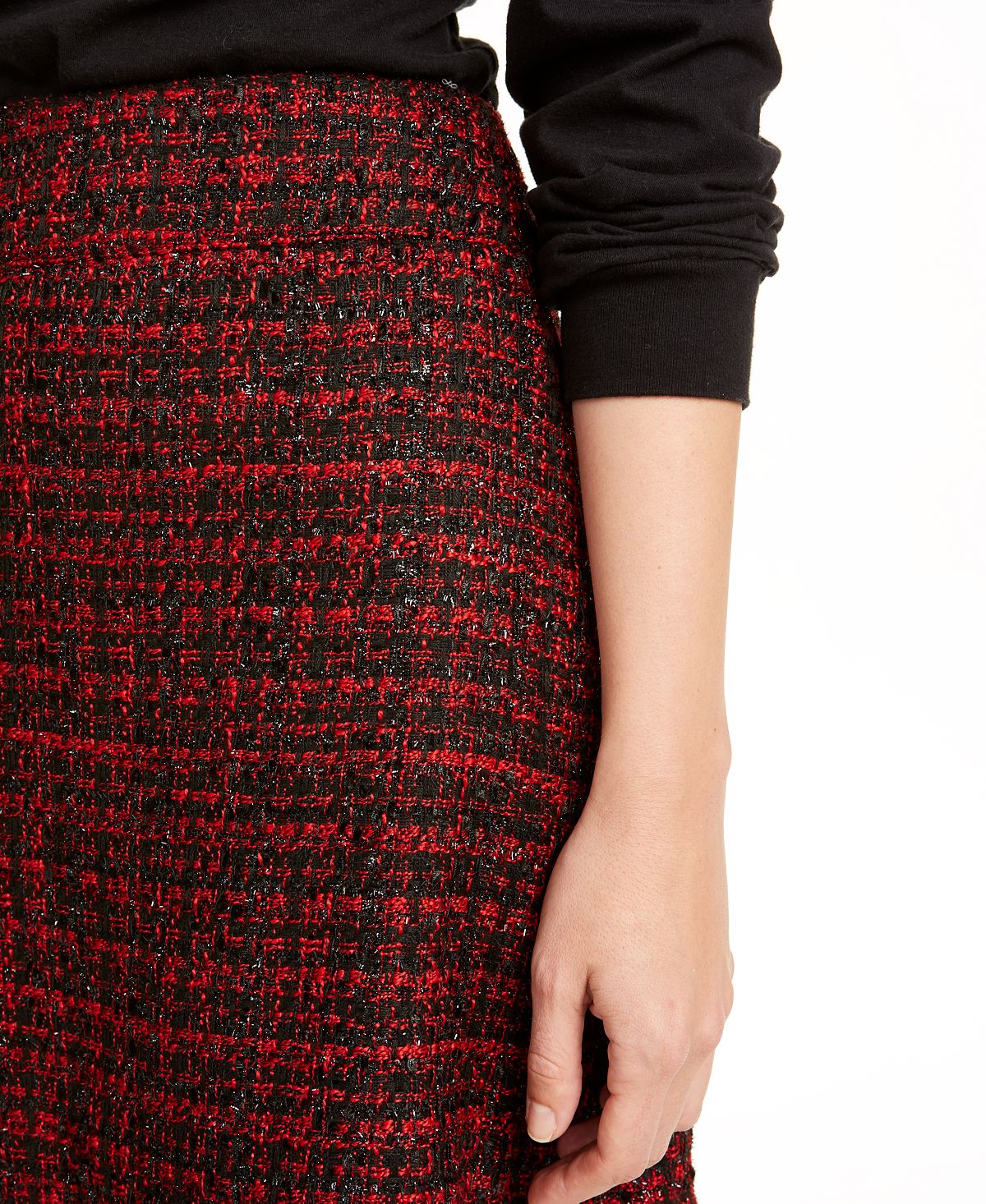 Satisfaça a sua necessidade por tweed com esta minissaia versátil da Maison Jules. Fica superfofa com uma blusa por dentro da calça e botas ou sapatilhas. | Comprimento curto; aprox. 17 de comprimento | Zíper e fecho de colchete | Fios metálicos em toda a peça | Forrado
