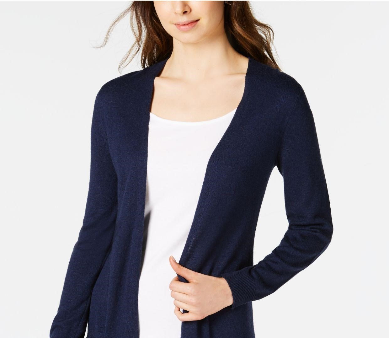 Cardigan feminino Maison Jules com frente aberta, azul, tamanho extrapequeno
