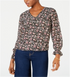 Blusa feminina estampada com decote em V Maison Jules, preta, tamanho médio