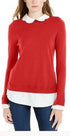 Suéter feminino Maison Jules com gola recortada e aparência em camadas, vermelho brilhante, tamanho grande