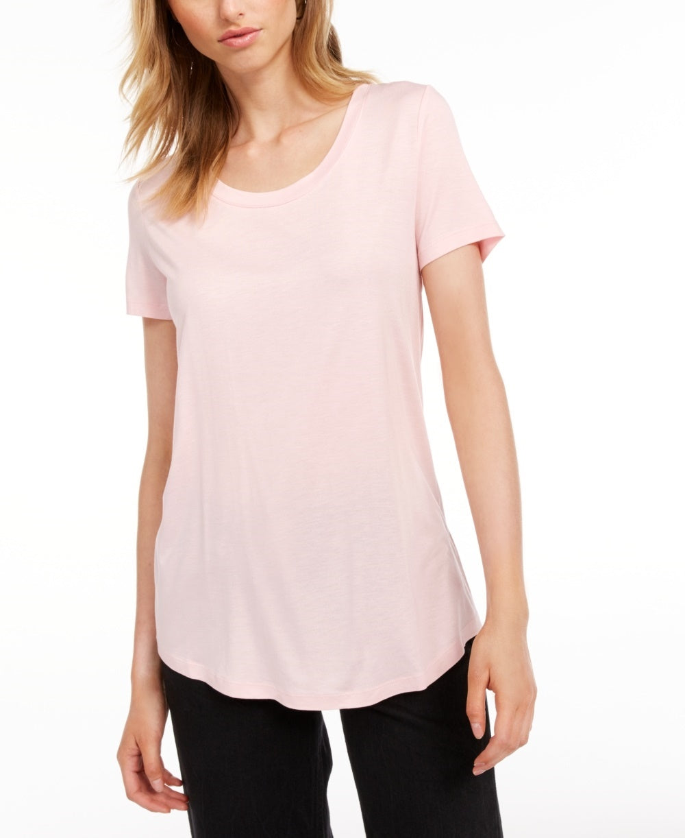 Camiseta feminina Maison Jules com decote redondo, rosa, tamanho extragrande