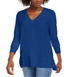 Suéter feminino Maison Jules com decote em V, azul, tamanho extrapequeno