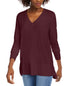 Suéter feminino Maison Jules com decote em V, vinho, tamanho pequeno