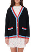 Cardigan feminino Maje Mysweetie com acabamento contrastante, preto, tamanho grande
