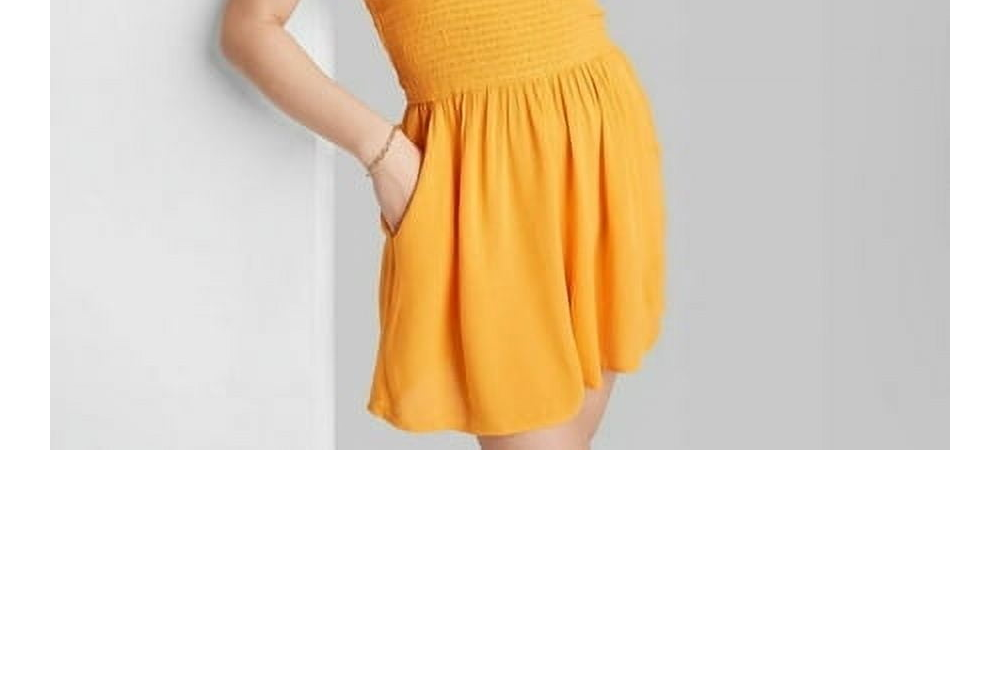 Design sem mangas | Textura tecida | Cós franzido | Cor laranja manga versátil | Tamanho médio | Marca Wild Fable™ | Ajuste confortável | Estilo casual | Material leve | Macacão sem zíper