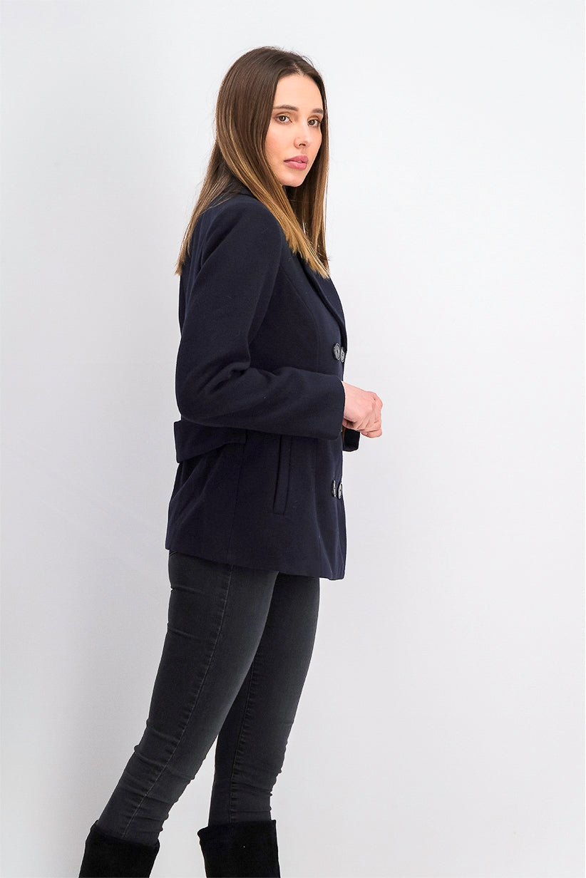 A altura aproximada da modelo é 1,75 m e ela veste tamanho M | Aprox. 63,5 cm de comprimento do centro das costas até a bainha | Gola estilo asa; fechos frontais com botões trespassados | Dois bolsos na frente | Forrado | Exterior: poliéster/viscose/elastano; forro: poliéster | Lavagem a seco