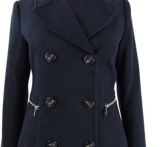 Casaco de lã marroquino trespassado Maralyn & Me Juniors, tamanho médio, azul-marinho