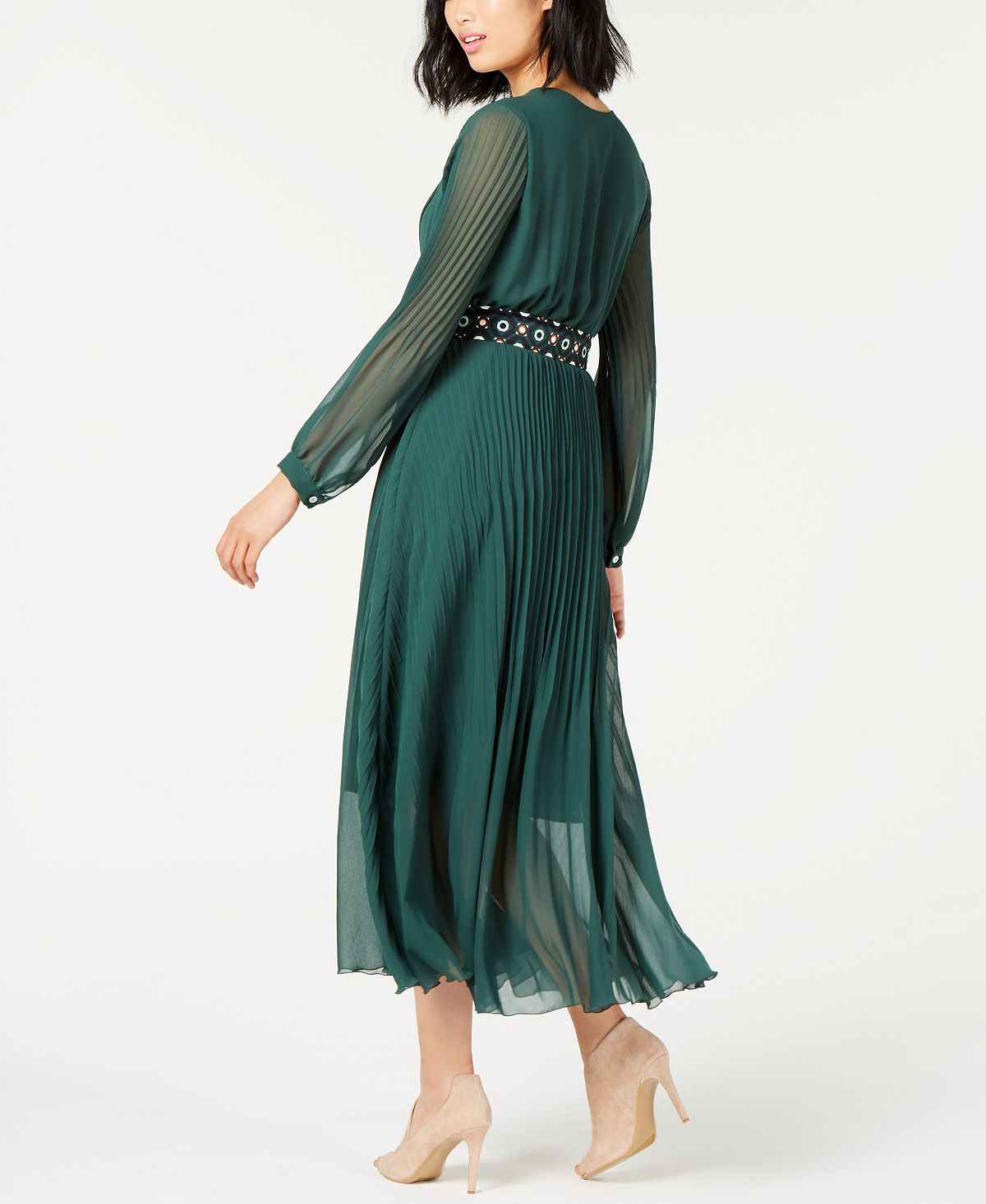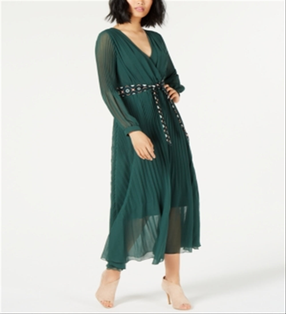 Vestido longo plissado com cinto Marella feminino, verde, tamanho 6