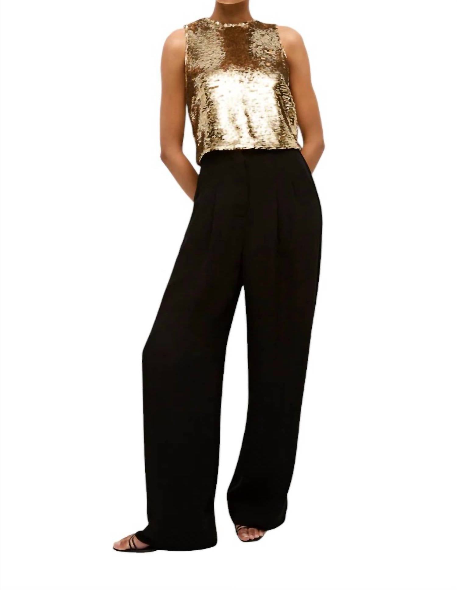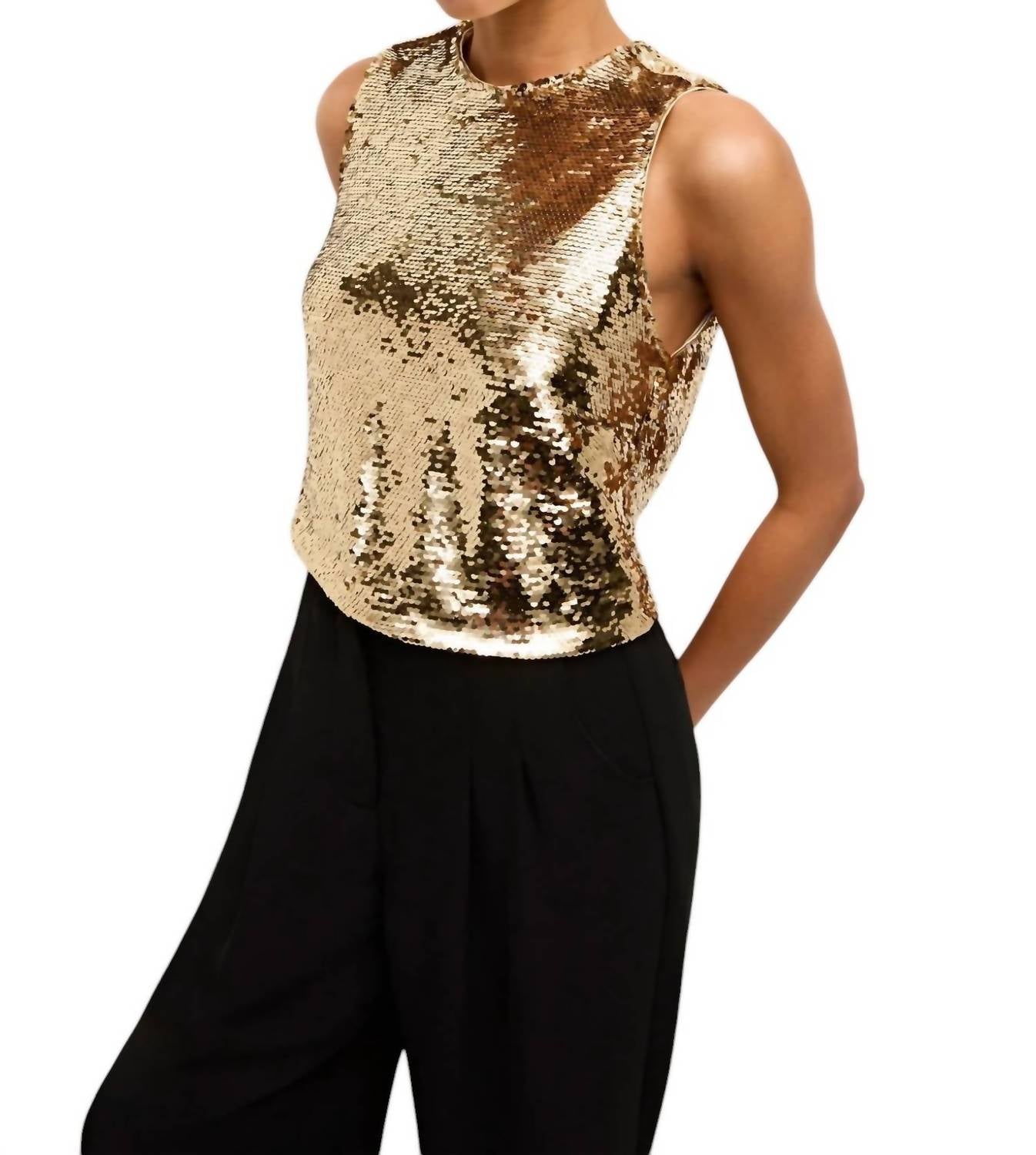 Esta regata clássica é perfeita para usar em camadas e é fofa o suficiente para ser usada sozinha. Esta blusa curta de lantejoulas apresenta um tom dourado suave com detalhes em cetim ao redor do pescoço. Confeccionada em tecido de lantejoulas que não estica, possui um decote central nas costas com fecho de botão e alça. Totalmente forrada e feita de 100% poliéster. Lavar somente à mão.