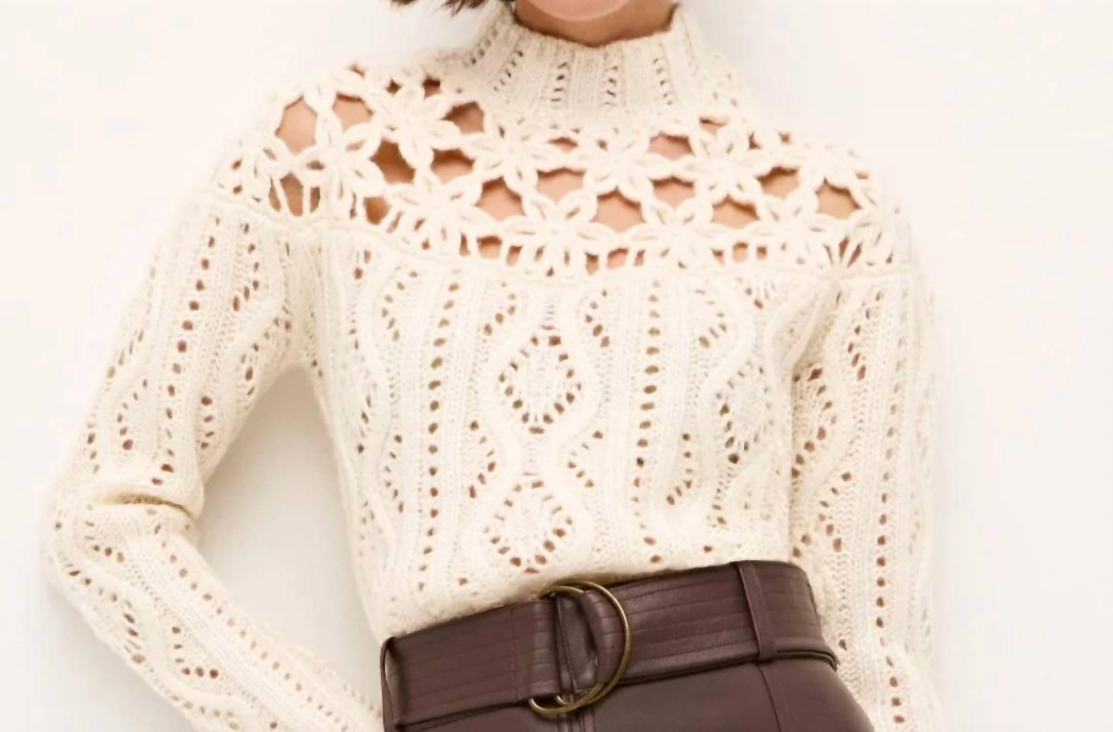 Use por baixo do seu suéter favorito ou por dentro de jeans para um visual de inverno perfeitamente elegante. Apresentamos o Suéter Flora da Marie Oliver, uma peça-chave para o guarda-roupa exigente. Este suéter branco de inverno possui mangas compridas e um elegante jugo floral em malha aberta, perfeito para adicionar textura e elegância. Confeccionada em uma luxuosa mistura de lã (73% lã, 27% poliéster), esta peça texturizada apresenta detalhes em malha trançada e canelada nas mangas e no corpo. Desenhada com gola alta e estilo pull-on para uma sofisticação sem esforço.