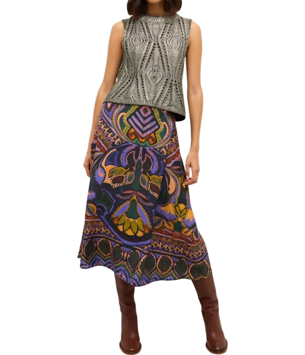 Exiba a quantidade certa de pele com esta saia midi lindamente desenhada. Estampa botânica ousada em tons outonais. Cós elástico na cintura natural para maior conforto. Comprimento midi elegante com caimento deslumbrante. Feito de 100% seda, totalmente forrado. Lavagem a seco ou à mão, pendurar para secar.