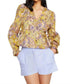 Marie Oliver's Morgan Long Sleeve Top in Meadow is a delightful addition to your spring wardrobe. This V-neck blouse features a playful peplum silhouette with a drawstring waist and elastic cuffs, accentuating your figure with ease. Crafted from 100% cotton, it showcases a vibrant floral stripe print that brings a touch of freshness to any look. Care for this stylish top by machine washing on a gentle cycle and hanging to dry, offering both convenience and lasting wear.