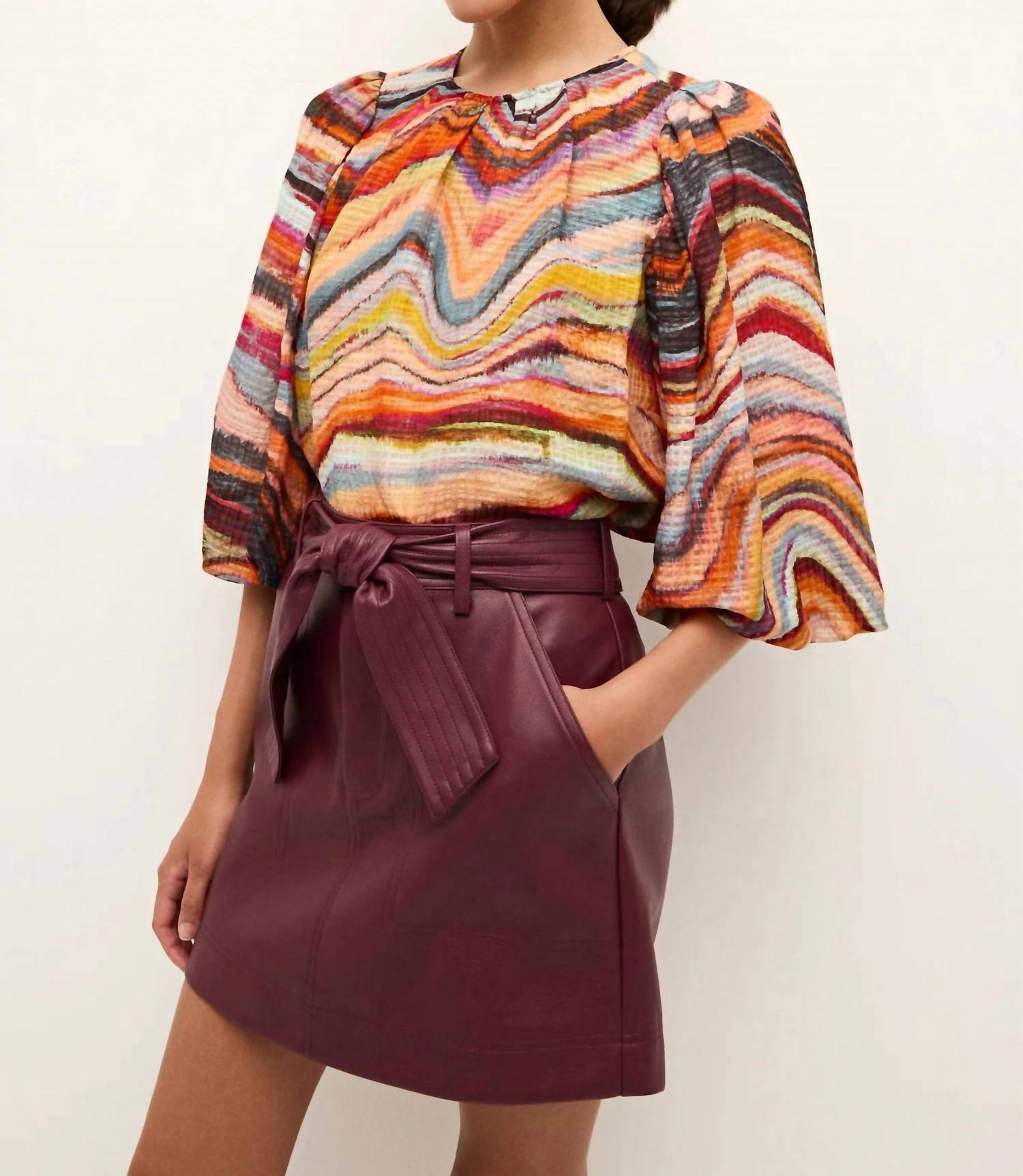 Marie Oliver apresenta o Top Harly Feminino, uma blusa listrada na cor vibrante Ammolite. Com mangas três quartos e gola redonda clássica, este top é confeccionado em uma mistura de viscose premium. Com um prático fecho de zíper nas costas, esta peça combina estilo e funcionalidade com perfeição. Cuide desta blusa elegante com lavagem a seco para mantê-la sempre impecável.