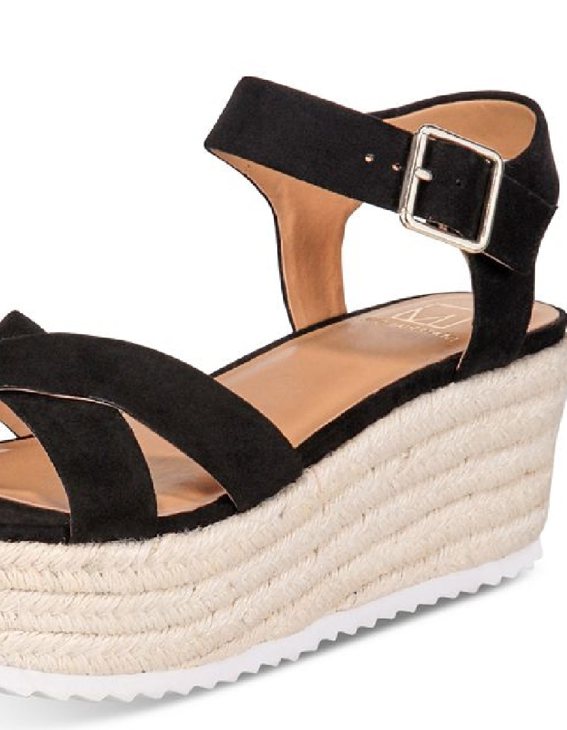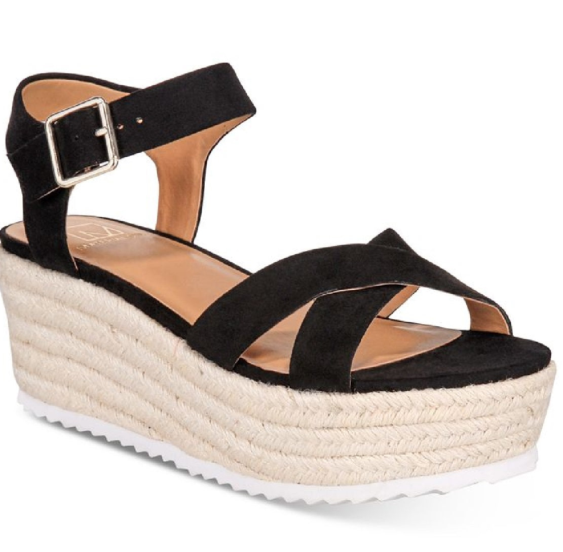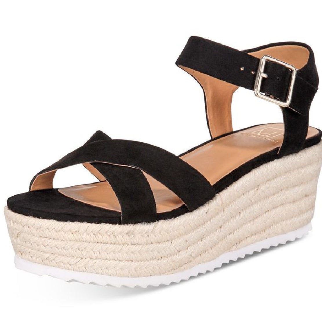 Material Girl Sandálias plataforma casuais femininas Mbrinnyf de algodão com bico aberto, pretas, tamanho 11 M