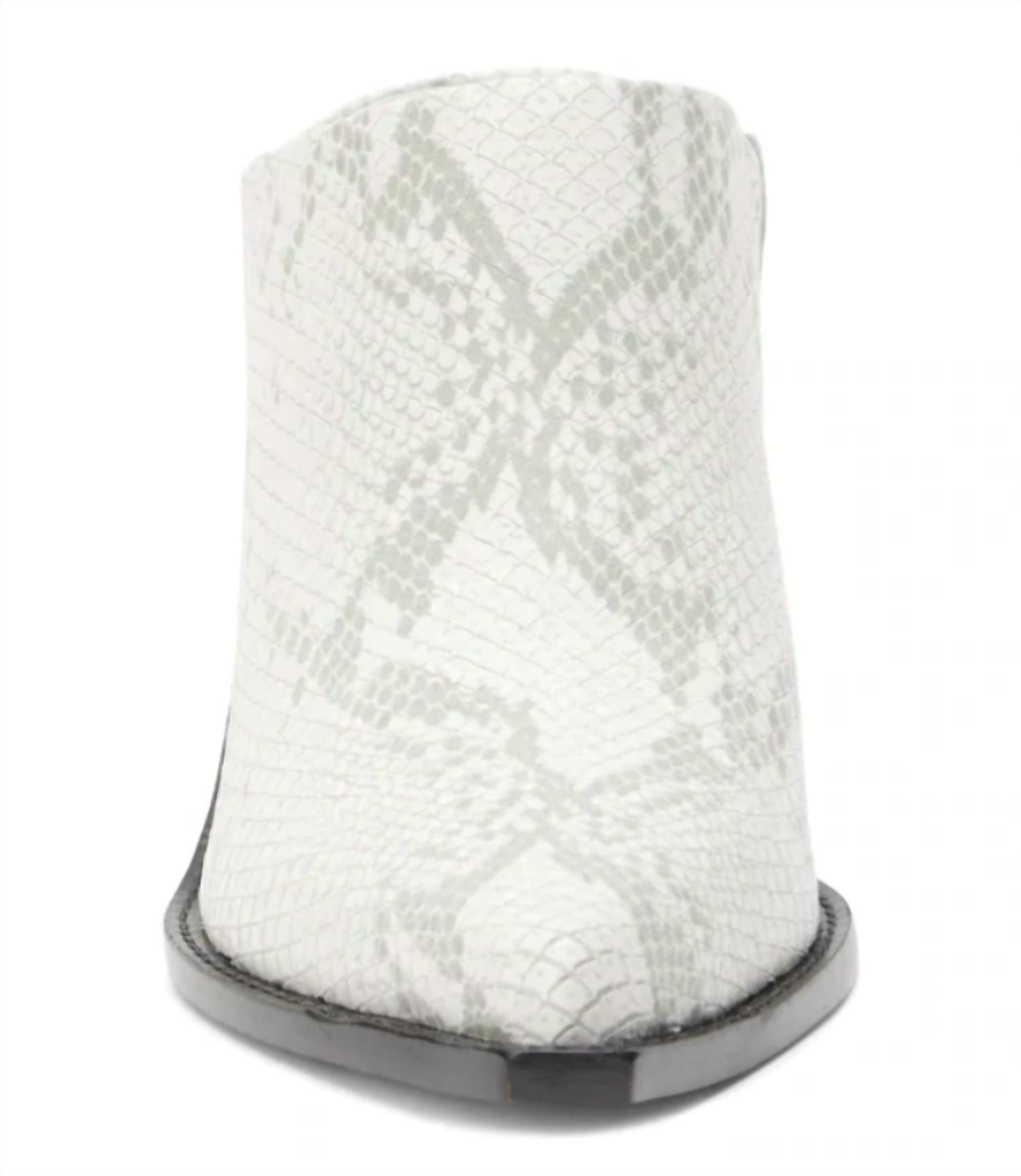 A trend that everyone is loving and this style might just be our favorite.Western-inspired, snake embossed mule.Details:Leather upperManmade outsole3 in / 7.62 cm heel heightTextile liningPadded insoleSlip-on style