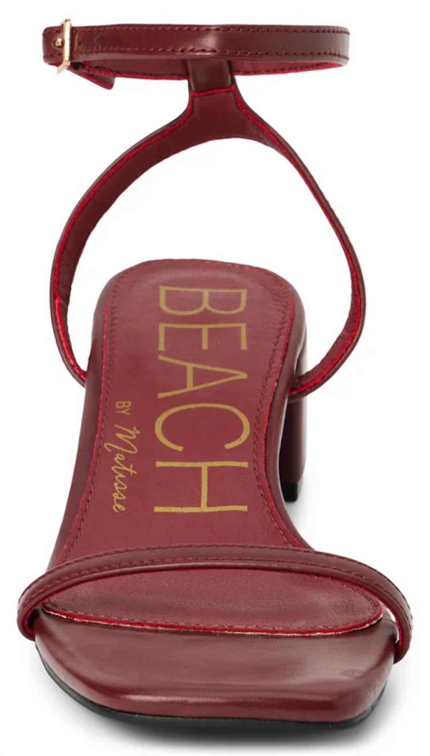 Introducing the Women's Belle Strappy Sandals by Matisse in a sophisticated wine hue, perfect for adding a touch of elegance to any outfit. These vegan block heel sandals feature a squared toe and a comfortable, low heel height of 2 inches (5.1 cm), ideal for all-day wear. Crafted with a synthetic leather upper and lining, and a manmade outsole, they ensure both style and durability. Closure: Buckle closure.