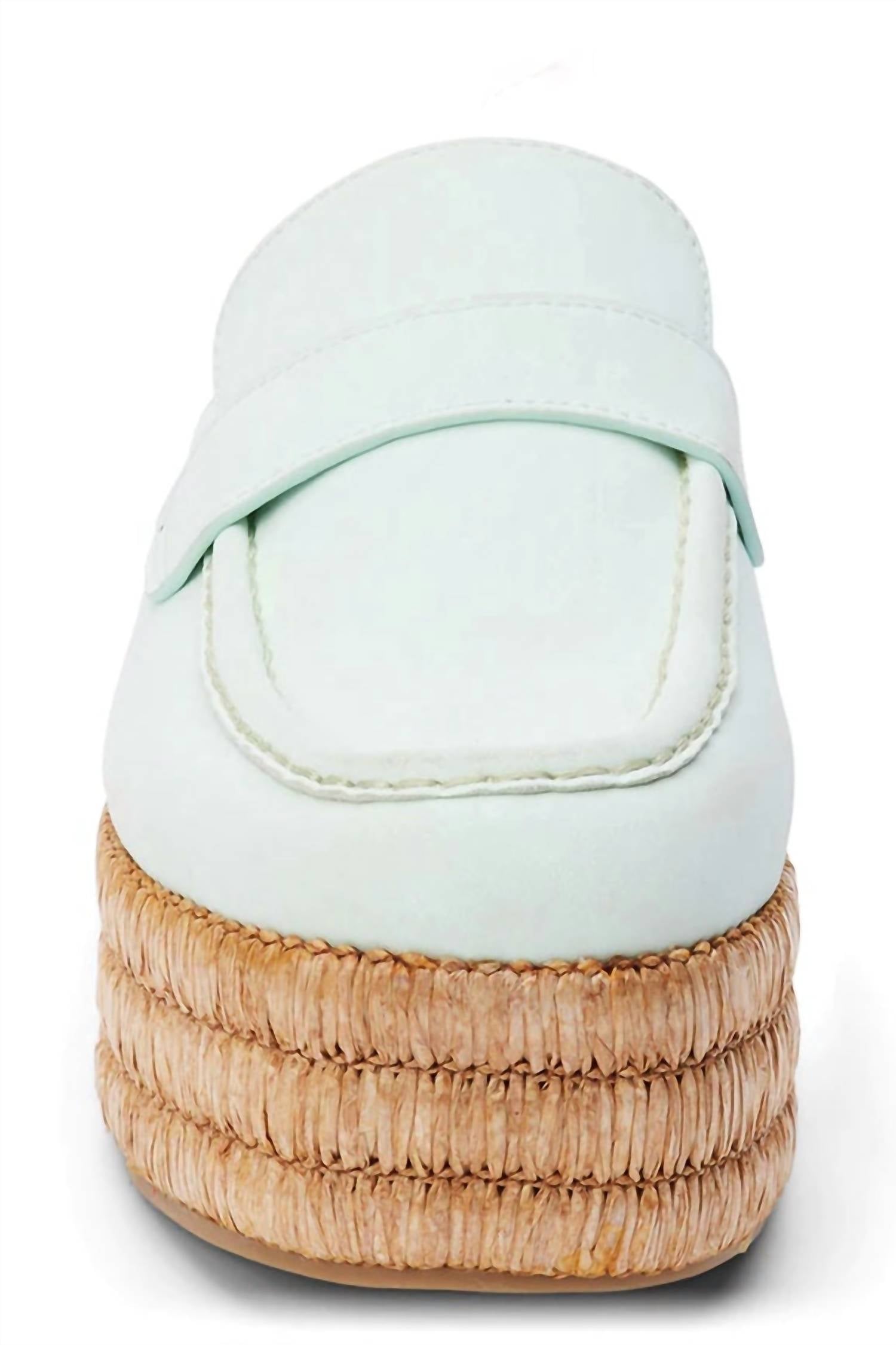 Elegante, confortável e versátil. Não encontramos nada de errado com este sapato. Mule vegano, estilo mocassim, com solado plataforma de ráfia. Cabedal em couro sintético. Solado sintético. Plataforma de 5,72 cm. Forro em couro sintético. Palmilha acolchoada. Estilo slip-on. Importado.