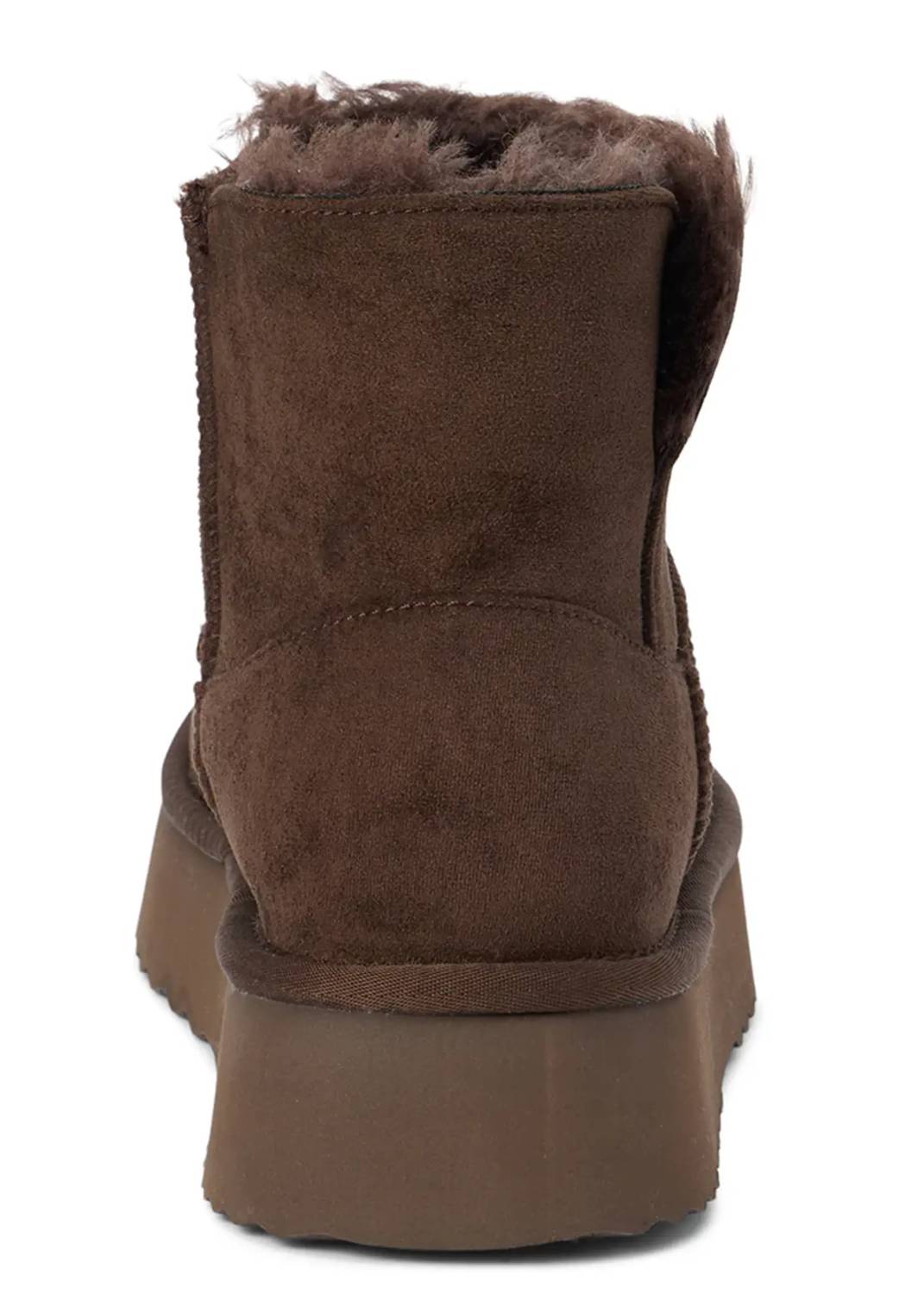 Entre na sofisticação aconchegante em um tom castanho quente. Projetado com cabedal de camurça sintética e forro luxuoso de pele sintética. Garanta o máximo conforto. Oferecendo salto anabela de 4,5 cm, plataforma de 2,5 cm e cano de 11,4 cm. Proporciona estilo e estabilidade. Com um estilo prático de calçar. Perfeito para adultos que buscam moda e praticidade.
