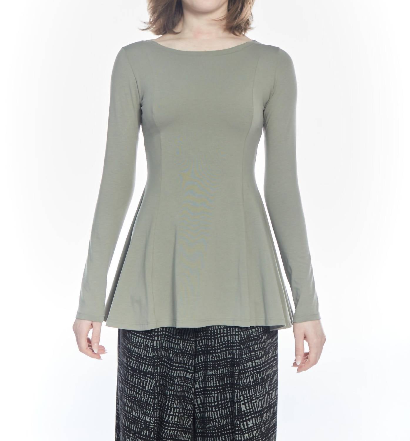Eleve seu guarda-roupa com a blusa de manga comprida Atarah Peplum da Matthildur, confeccionada em lycra de algodão peruano de alta qualidade. Esta sofisticada peça verde-oliva apresenta mangas compridas e um corte peplum slim elegante, perfeito para realçar suas curvas. Fechamento: Puxe para vestir. Cuidados: Lavar à máquina e secar na secadora.