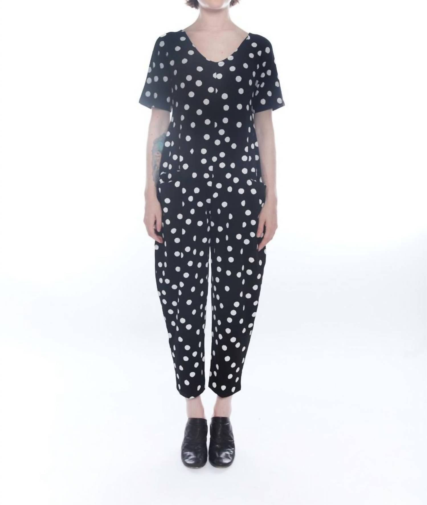 A escolha perfeita de roupa quando você precisa de algo rápido para vestir e ainda quer ter um visual descolado sem esforço. O Macacão Blair de Manga Curta da Matthildur é a combinação perfeita de estilo e conforto com seu caimento solto e elegante decote em V. Confeccionado em algodão de alta qualidade, este macacão apresenta uma charmosa estampa de mini bolinhas pretas e um prático fecho de pressão. Com mangas curtas e pernas afuniladas, inclui bolsos para maior funcionalidade. As instruções de cuidado são simples: lavar na máquina e secar na secadora. Ideal para mulheres, oferece um look atemporal e fácil de usar.