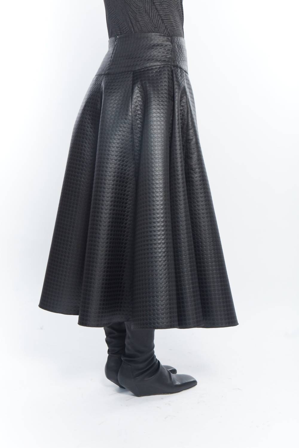 Apresentamos a Saia Midi Gable Quilt da Matthildur, uma peça de destaque em preto atemporal que vai elevar o seu guarda-roupa. Confeccionada em algodão premium, esta saia de comprimento midi apresenta um padrão de bolinhas exclusivo que adiciona textura e interesse visual. Perfeita para looks ousados, ela é desenhada sem bolsos para uma silhueta elegante. O cuidado é simples, com compatibilidade para lavagem à máquina e instruções de secagem em tambor.