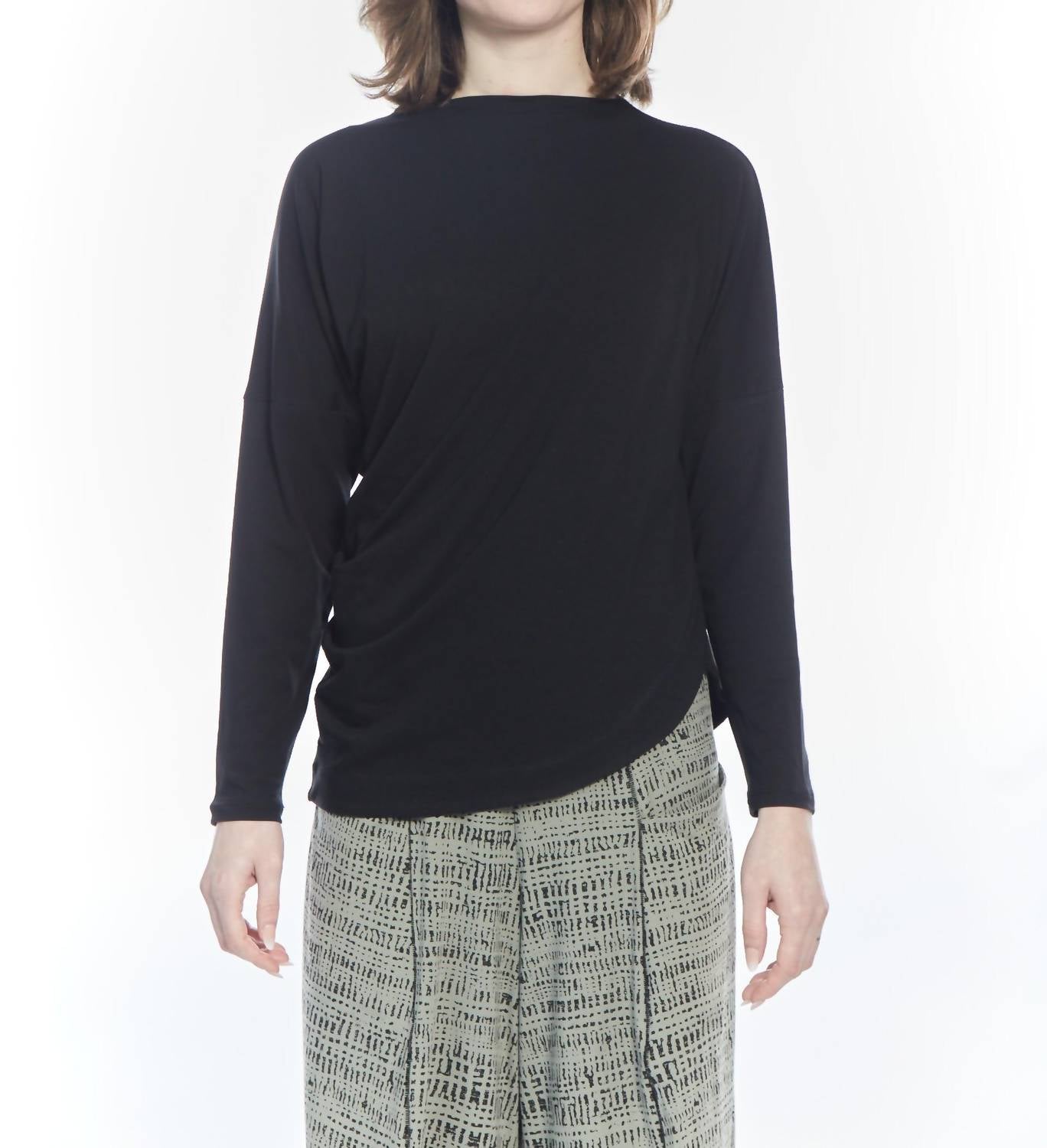 Caimento perfeito, design charmoso, tecido macio. Você vai adorar tudo nesta camiseta de manga comprida. A Blusa de Manga Longa Luna da Matthildur é uma peça essencial e refinada, com mangas longas e um sofisticado decote canoa. Confeccionada em lycra de algodão peruano premium, oferece um caimento relaxado acentuado por franzidos drapeados para um efeito assimétrico. Este modelo, em preto atemporal, é perfeito para looks versáteis e elegantes. Cuidados: Lavar à máquina e secar na secadora. A modelo tem 1,68 m e veste tamanho XS.