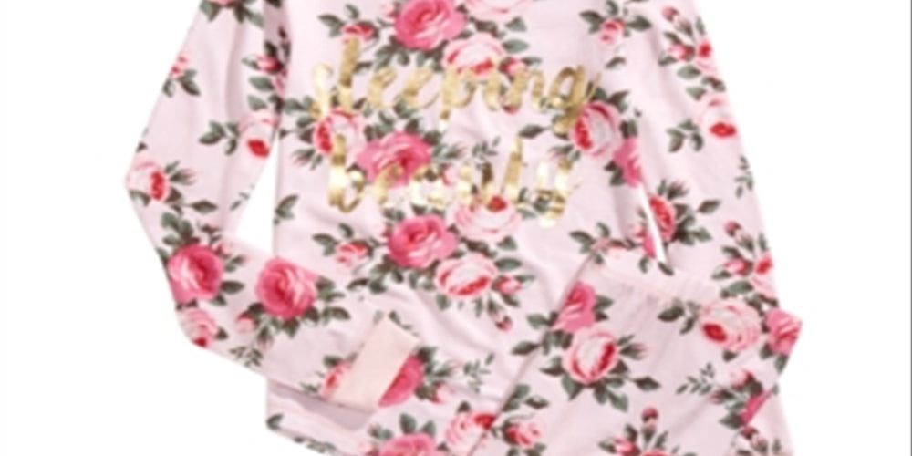 Conjunto de pijama com estampa floral da Bela Adormecida, 2 peças, Max & Olivia, Little & Big Girl, rosa, tamanho M