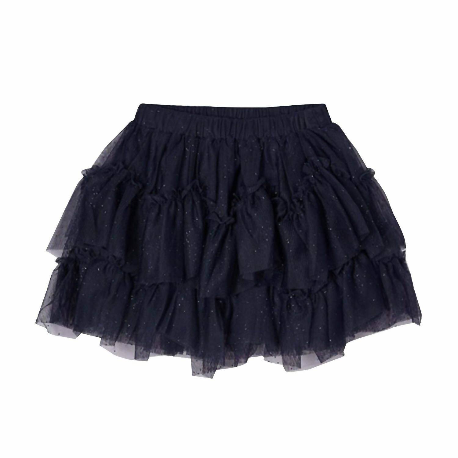 Elevate your little one's summer wardrobe with the Mayoral Girl's Tiered Tutu Skirt in navy. This 90s fashion-inspired skirt is made from 100% polyester and boasts an allover sparkling glitter design that captures the light beautifully. With an elasticated waistband, it ensures a comfortable fit for any vacation outing. The addition of a 100% cotton lining enhances its comfort factor, while care instructions suggest a machine wash for easy maintenance.