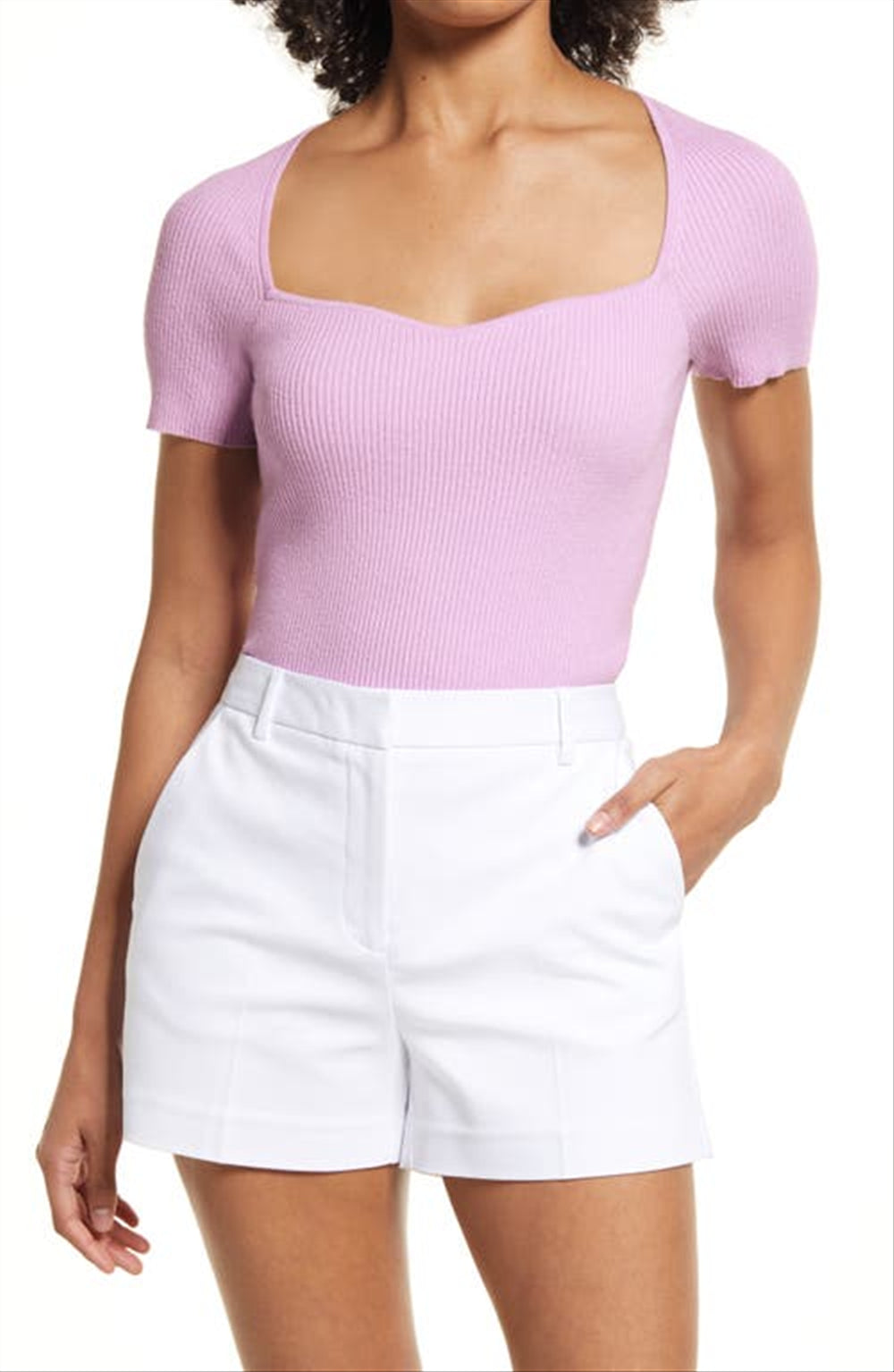 Decote coração | Textura canelada | Tonalidade roxa vibrante | Tamanho médio | Ajuste confortável | Marca Halogen® de alta qualidade | Peça perfeita para sobreposição | Material quente | Elástico flexível | Fácil de cuidar