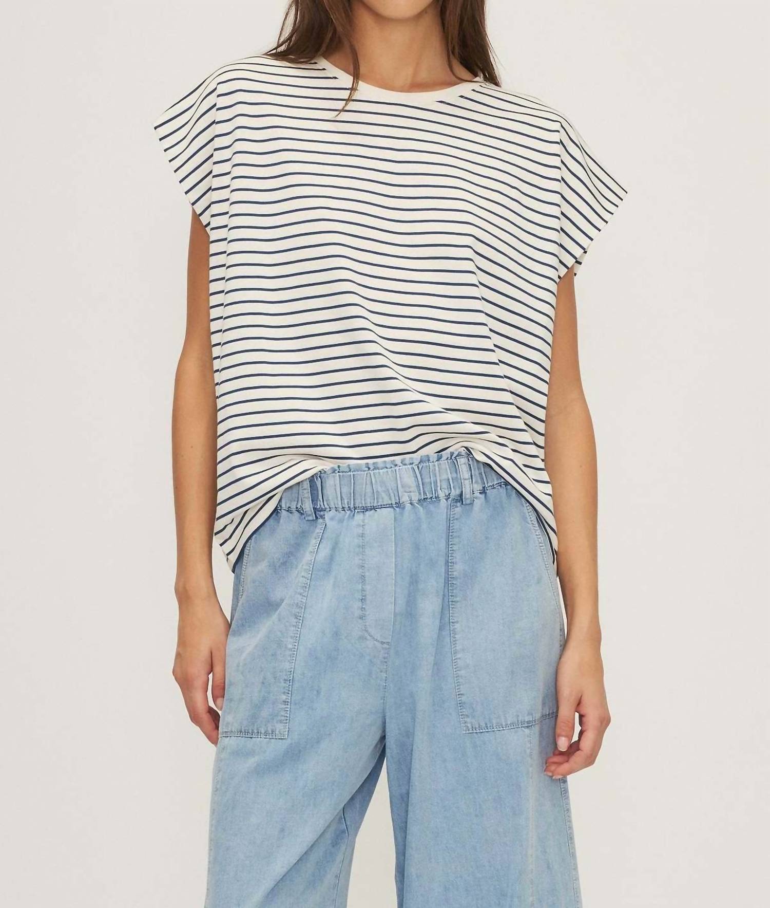 Discover the Anita Sleeveless Top by Melissa Nepton, a must-have for your casual summer wardrobe. This taupe stripe blouse offers effortless style with its relaxed fit and crewneck design. Made from 100% cotton, it ensures comfort and breathability. Easy to care for, simply hand wash cold, lay flat to dry, and iron on low.