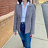 Elevate your ensemble with the Cabane Puff Sleeve Blazer by &merci, showcasing a playful brown and cobalt blue houndstooth pattern. This blazer boasts long puff sleeves and a notched lapel, complemented by a front button closure and convenient pockets. Crafted from a blend of 80% polyester and 20% acrylic, it promises both style and functionality. The quilted lining ensures warmth and comfort, making it an ideal choice for fall travel and workwear.