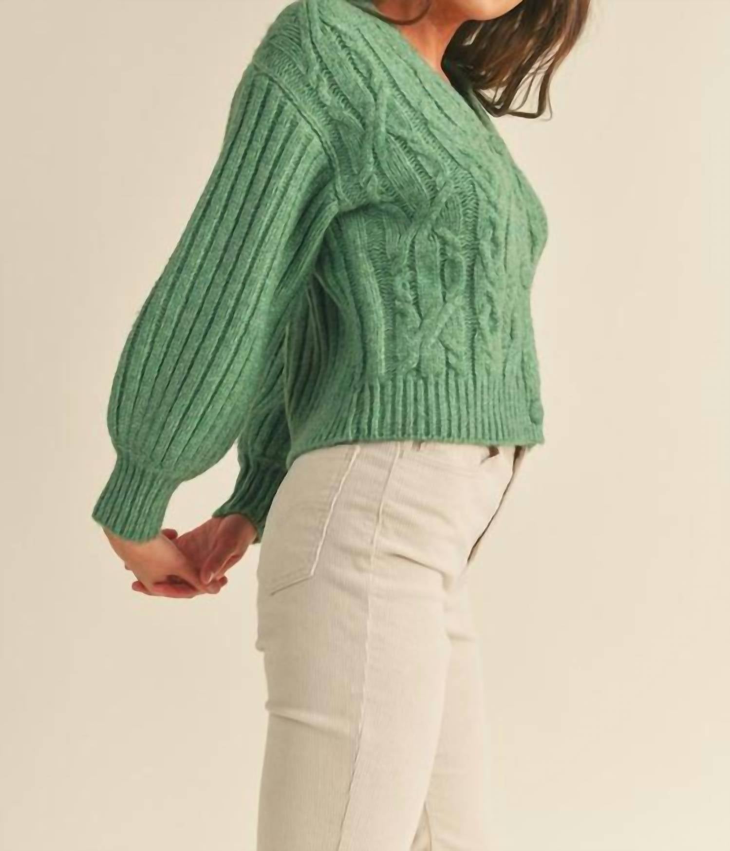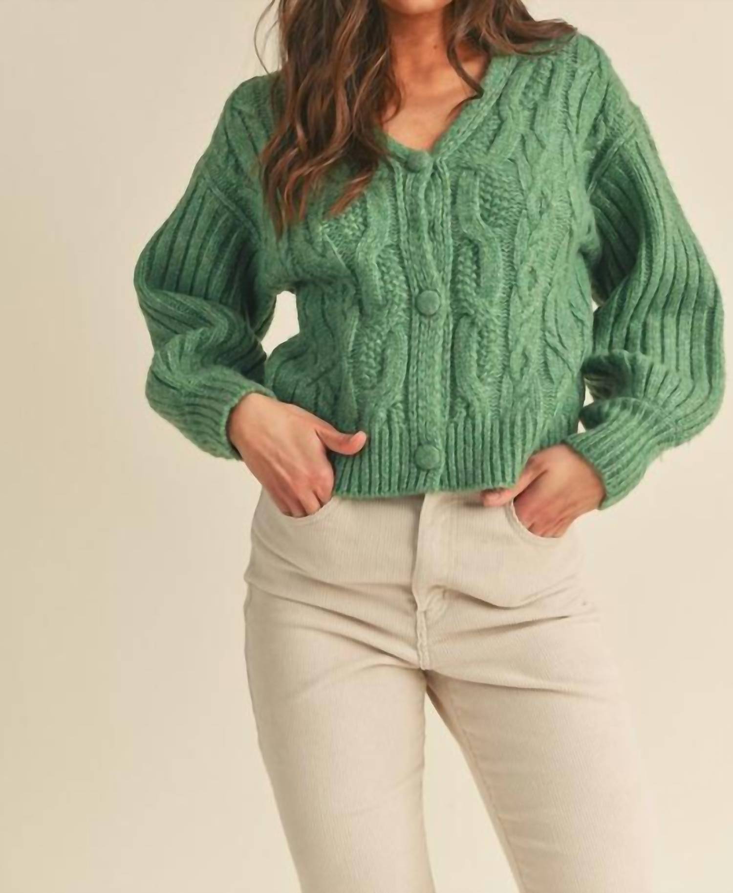&Merci - CABLE KNIT PUFF SLEEVE SWEATER CARDIGAN