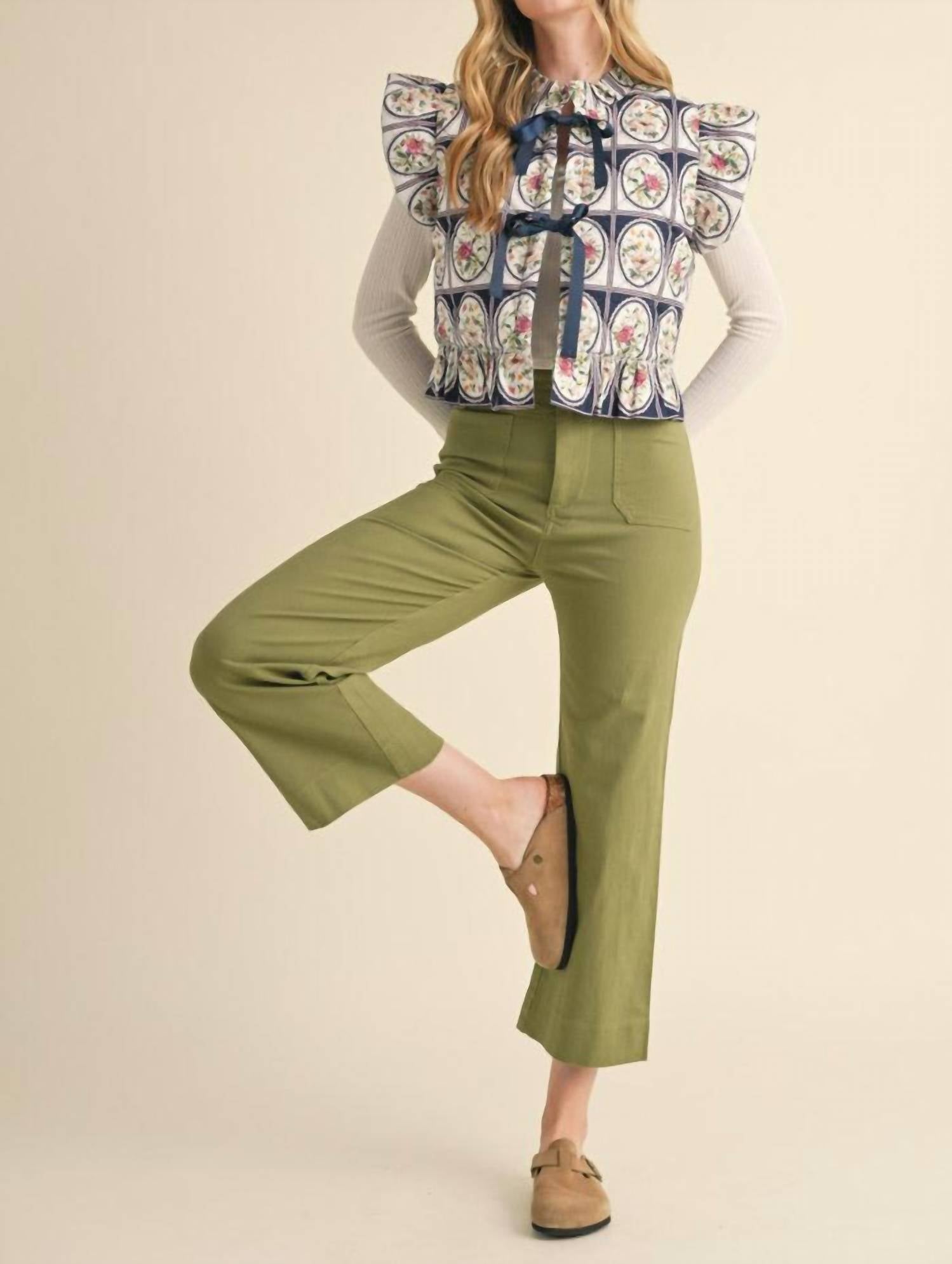 Abrace um clima descontraído com a Calça Drift Away da &merci, confeccionada em um elegante verde-sálvia. Esta calça de cintura alta e pernas largas possui fecho de zíper e botão para um ajuste seguro. O comprimento cropped e os bolsos frontais e traseiros adicionam praticidade e estilo. Perfeita para um look casual e chique, ela é um item essencial em qualquer guarda-roupa. A modelo tem 1,77 m e mede 81,5 cm, veste tamanho P e veste tamanho 32,5-62,5 cm.