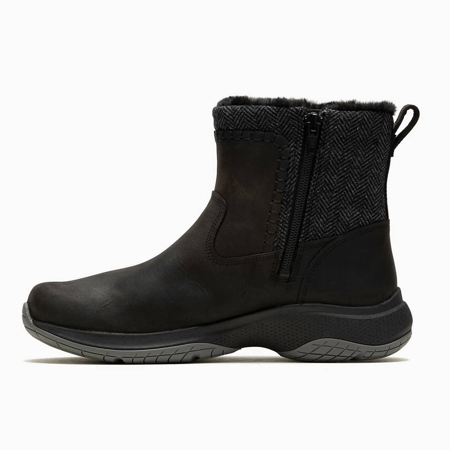 Conheça as Botas Femininas Encore Ice Mid Zip da Merrell, a combinação perfeita de estilo e funcionalidade para o inverno. Estas botas apresentam cabedal em couro premium de grão integral com acabamento à prova d'água, juntamente com forro de pele sintética e fleece para maior aquecimento. Equipadas com um prático fecho de zíper, prometem facilidade de uso, enquanto a entressola FloatPro Foam e o solado de borracha aderente Merrell proporcionam conforto leve e tração durável. Embora o país de origem não seja especificado, estas botas foram projetadas para o máximo conforto no inverno.