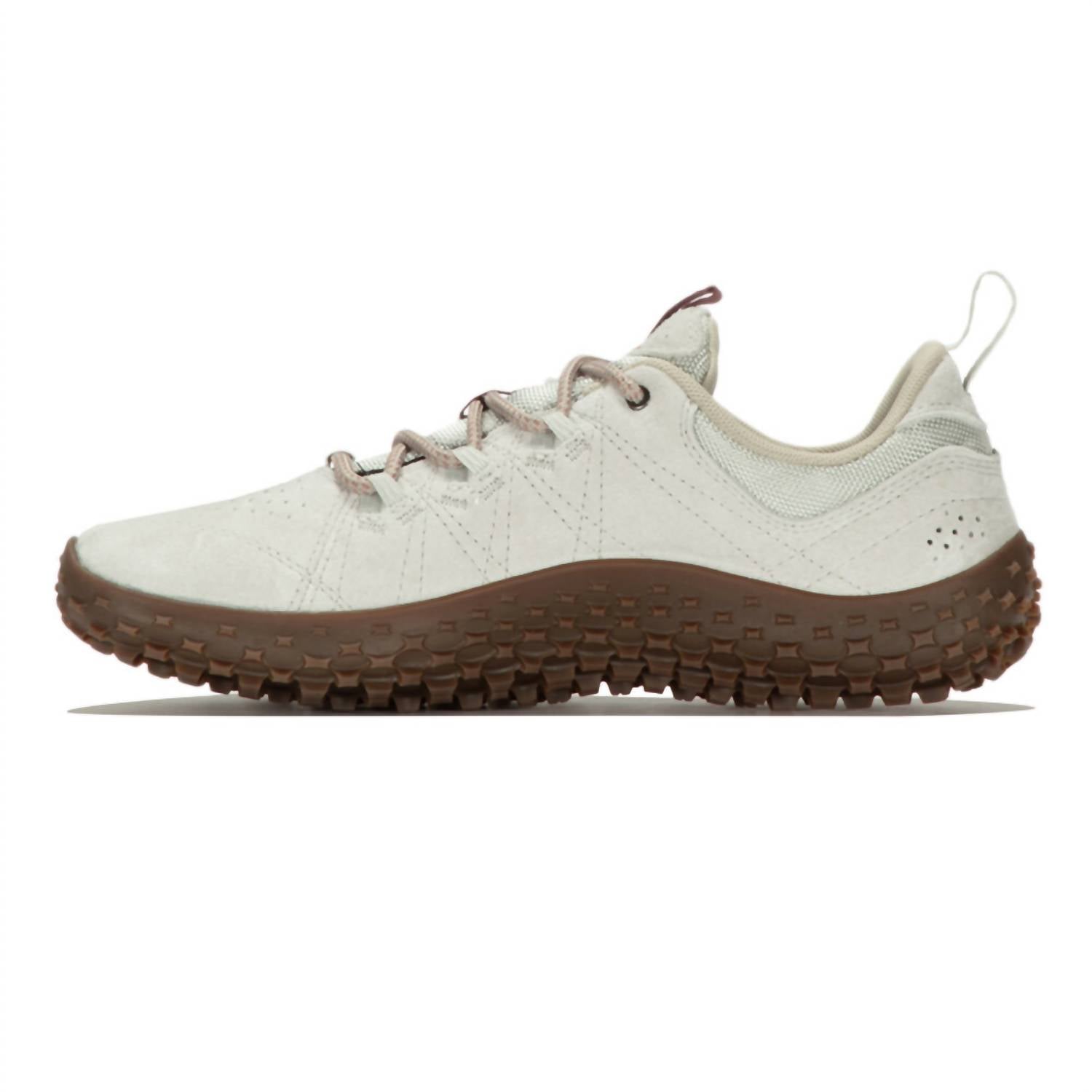 Cute, functional, and comfortable. These sneakers check all the boxes. Experience the MERRELL Women's Wrapt Low Top Barefoot Sneaker, a perfect blend of comfort and style for your hiking adventures. This light gray sneaker features a wide toe box for natural movement and a pig suede and mesh upper for breathability. Enjoy the traditional lace closure coupled with Merrell Barefoot 2 construction to keep your feet naturally positioned. With Cleansport NXT™ for odor control and Merrell Quantum Grip™ for durability, these sneakers offer reliable performance on any trail. Stack Height: 13-13mm; Weight: 0lbs-8.82oz (250g).