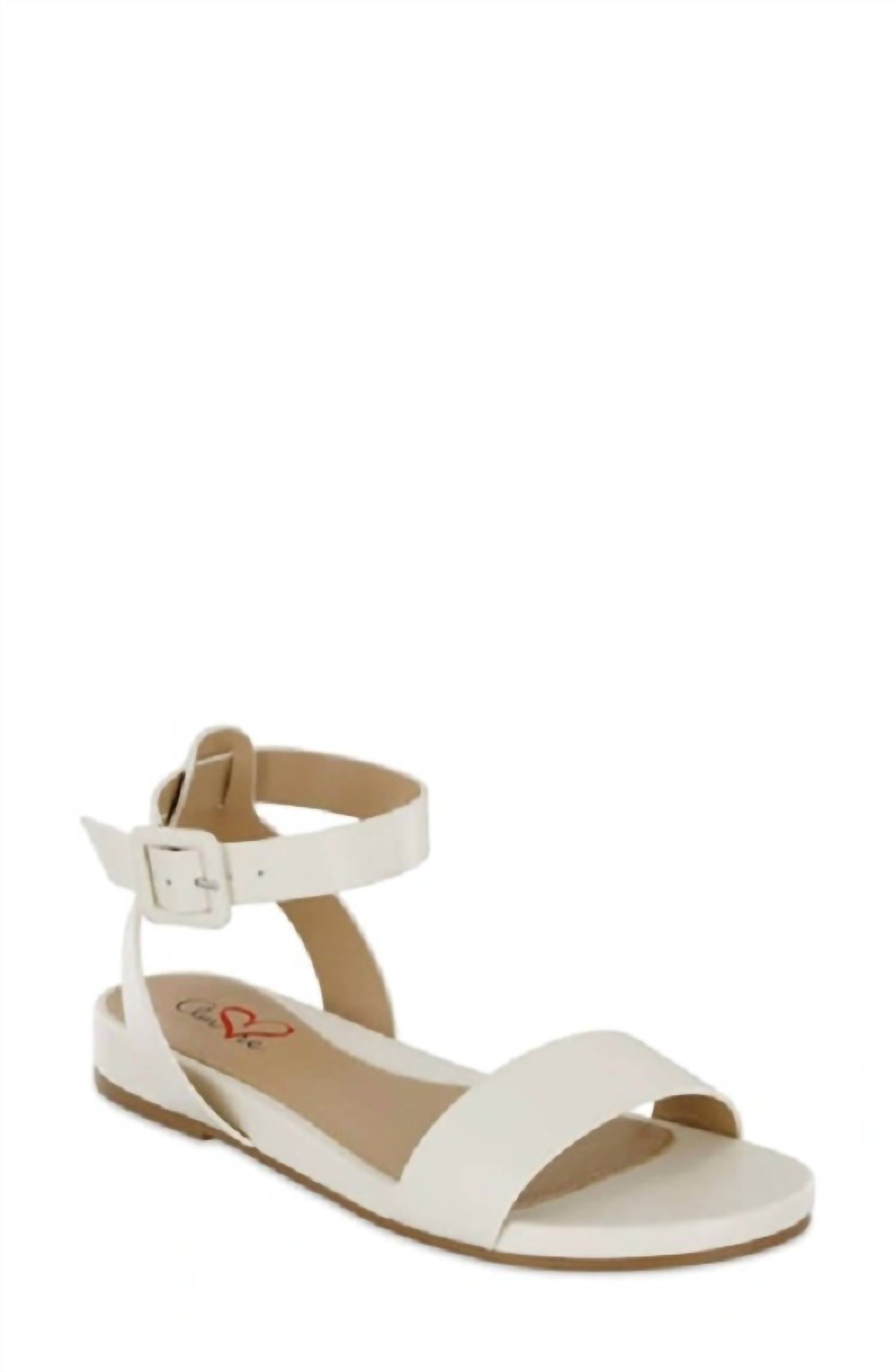 Vestidos fluidos, calças cropped e até macacões... esta sandália combina com todos! Tira superior em couro sintético. Tira ajustável no tornozelo. Fecho com fivela. Bico redondo. Importado. Salto de 2,5 cm.