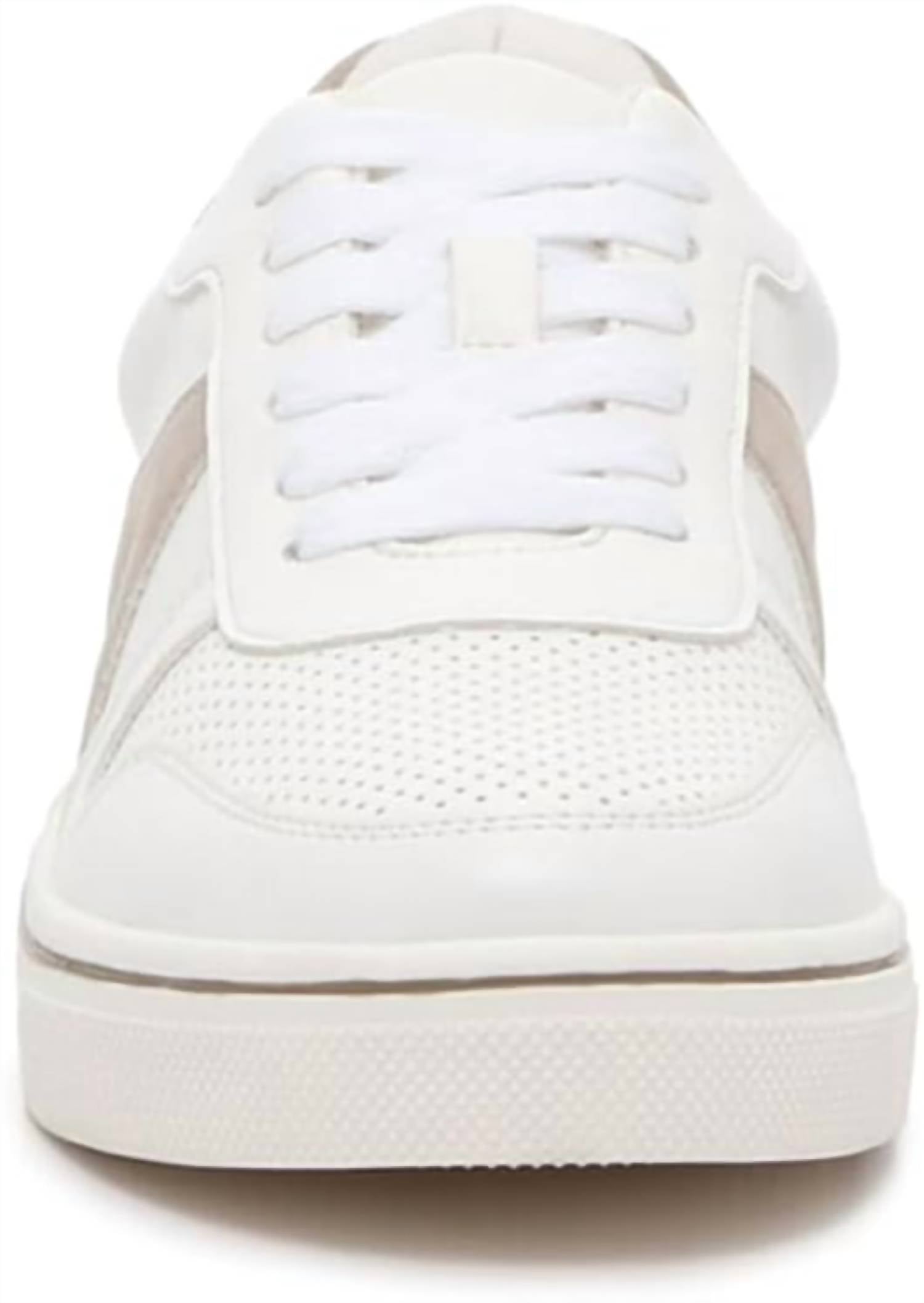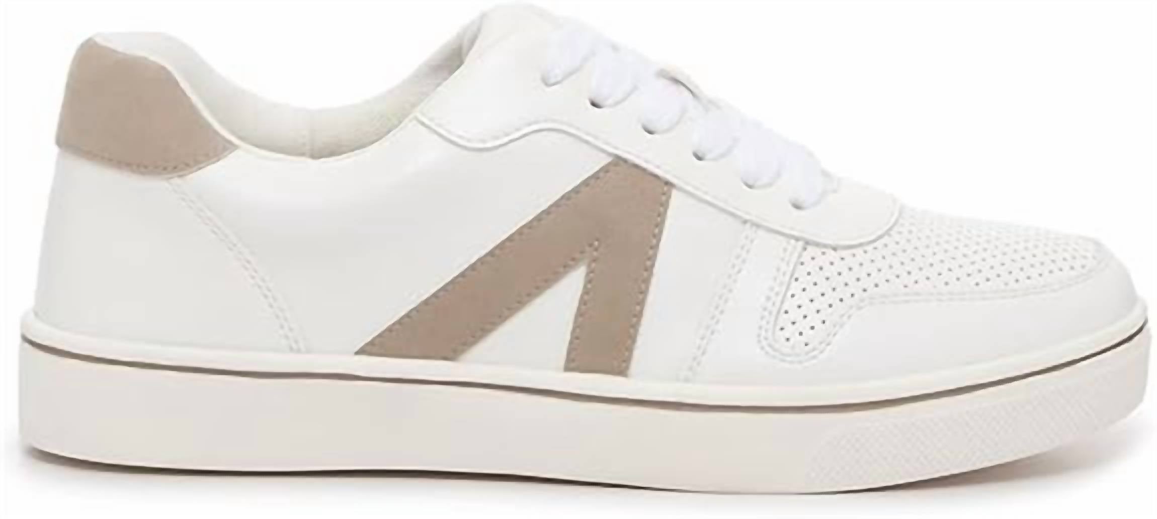 Get your daily steps in with these adorable sneakers. Discover comfort and style with the Women's Alta Sneaker by MIA, featuring a durable leather and suede upper in a chic white/cement colorway. These sneakers boast a breathable composition complemented by a soft synthetic lining and a padded insole for ultimate comfort. Designed with a flexible rubber outsole, they provide outstanding traction and stability, making them perfect for any terrain. Closure: Lace-up. Ideal for women who prefer true-to-size fit and appreciate a classic round toe and flat heel design.